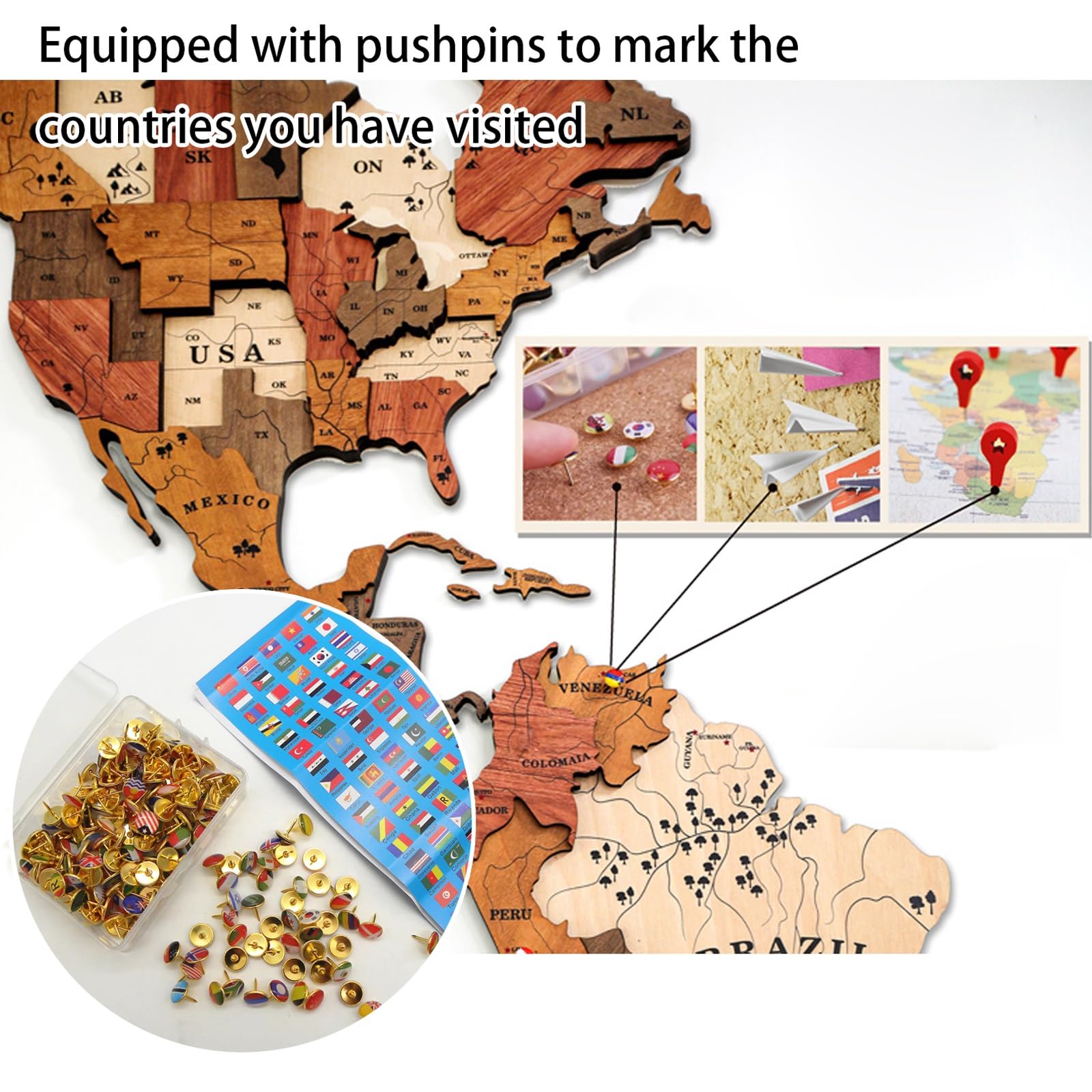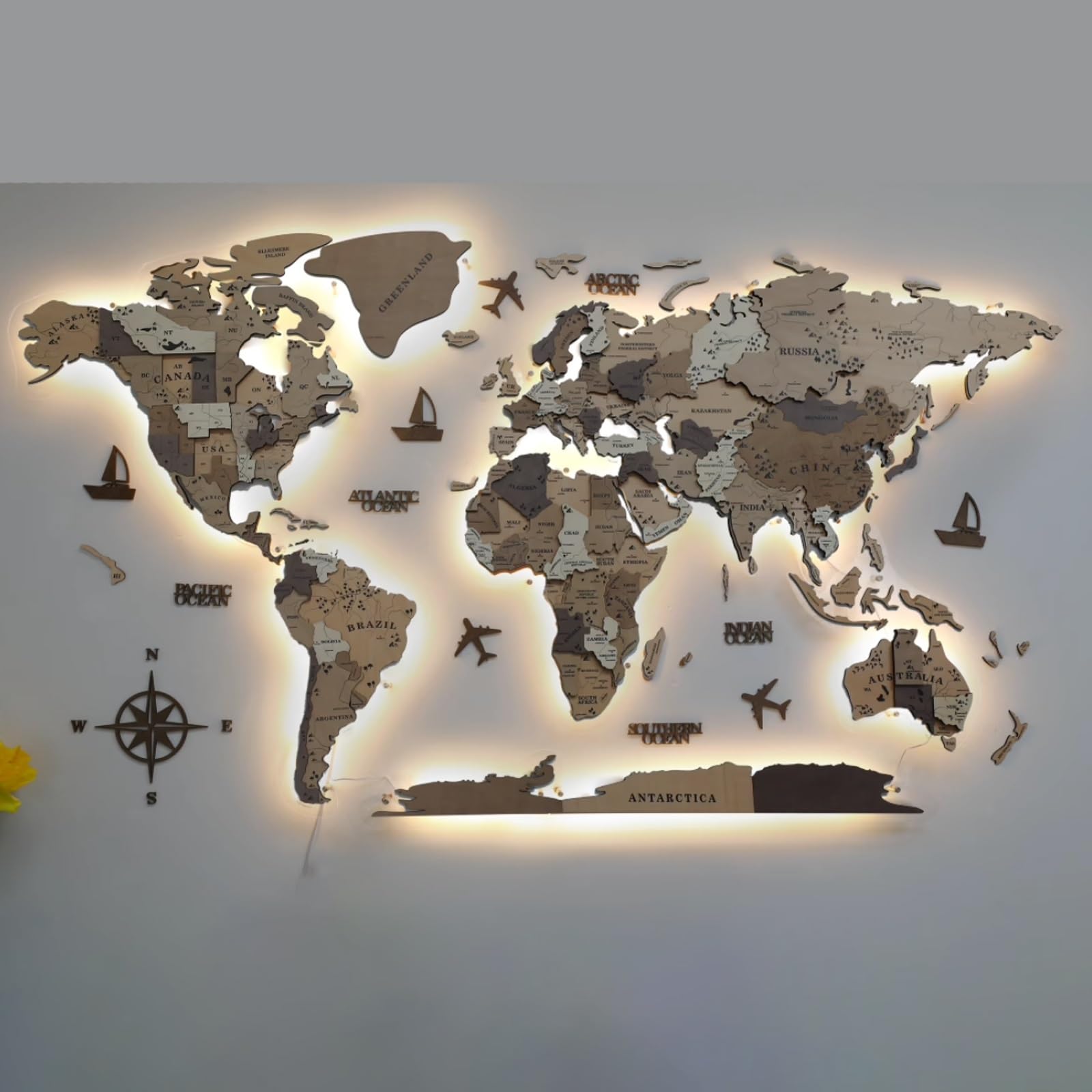 - Creative art design: The wooden airplanes, ships and compass decorations are carefully carved and integrated into the world map. They are exquisite wall decorations during the day, and the LED lights are turned on at night, turning them into lifelike works of art.