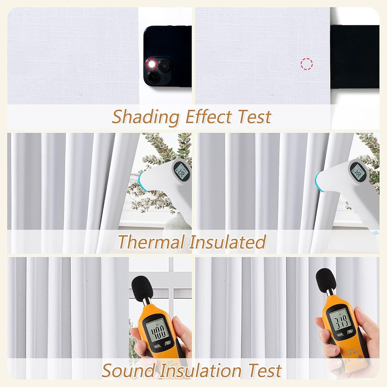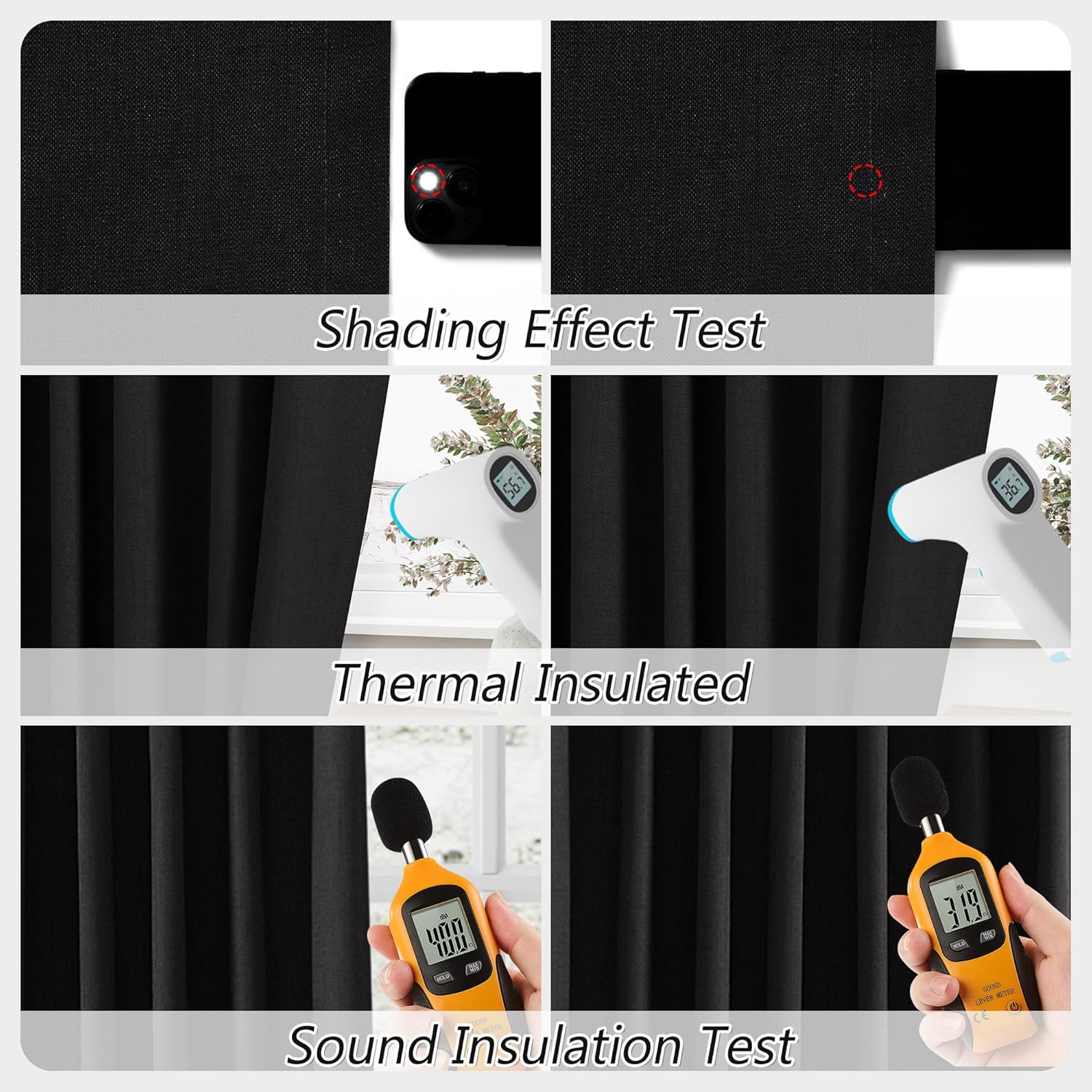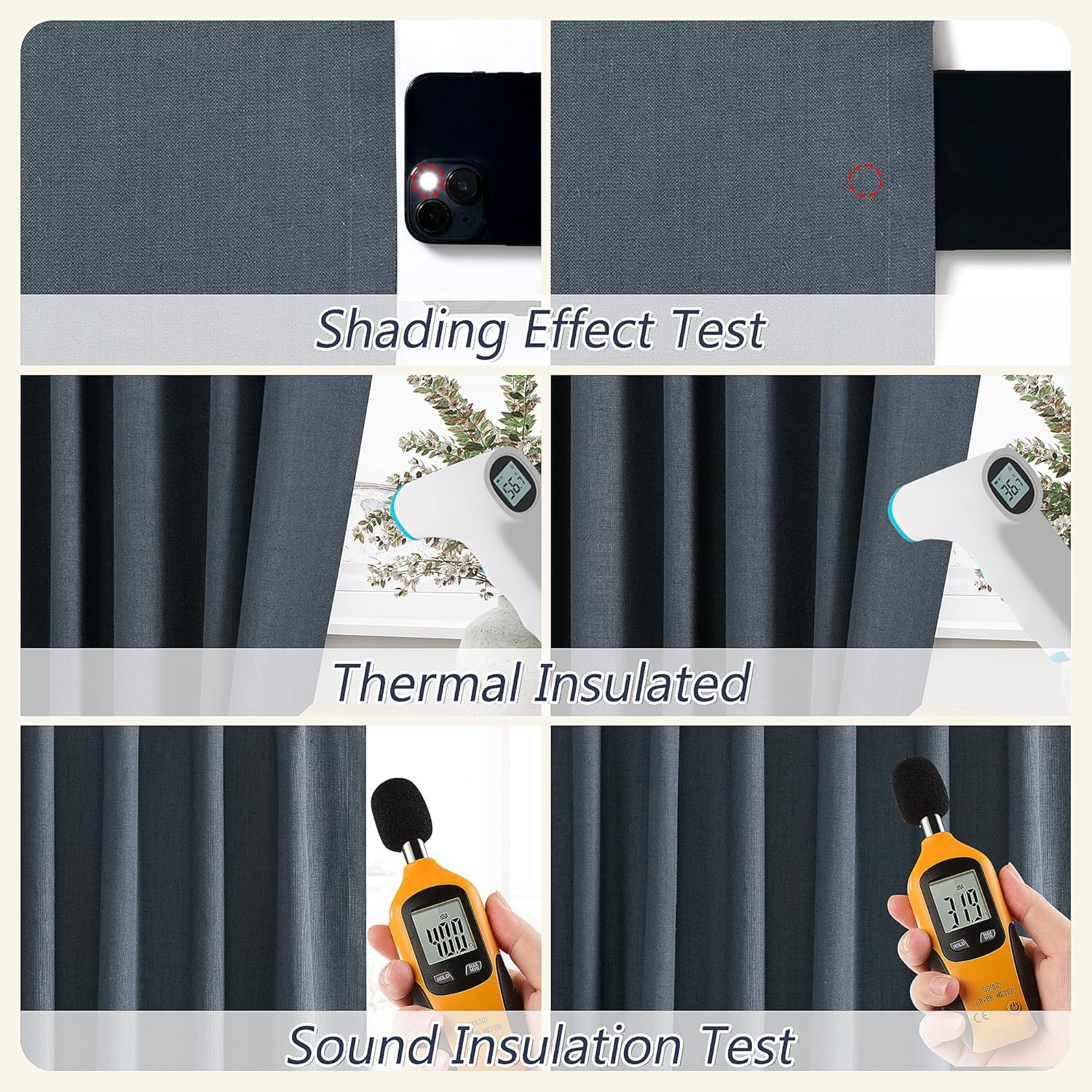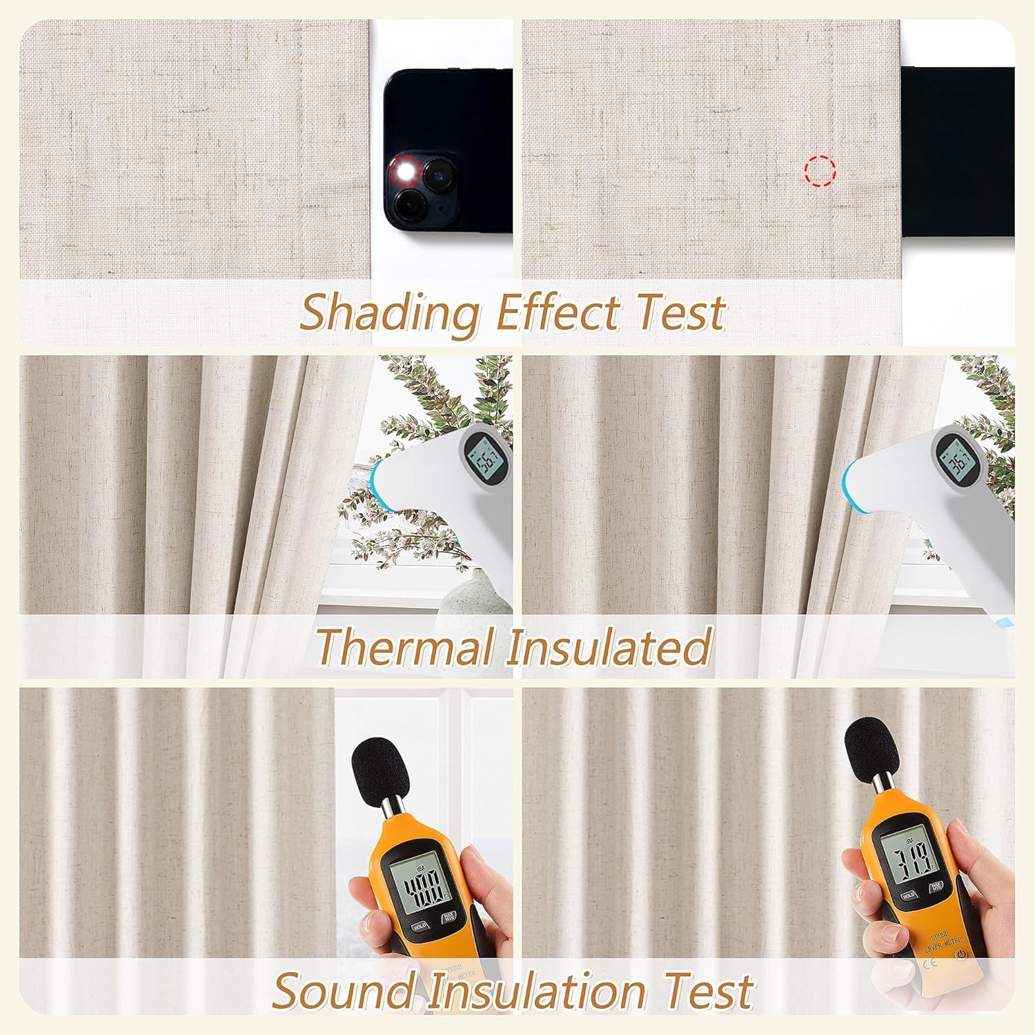 - 100% Blackout Curtains: A full blackout white coating is attached to the back of our linen curtains, blocking 100% of sunlight and UV rays. Provide you a complete private and personal space for a sweet sleep or rest. Good choice for bedrooms, nursery, living rooms, offices, patio door. Also perfect for babies, night shift workers and people sensitive to light