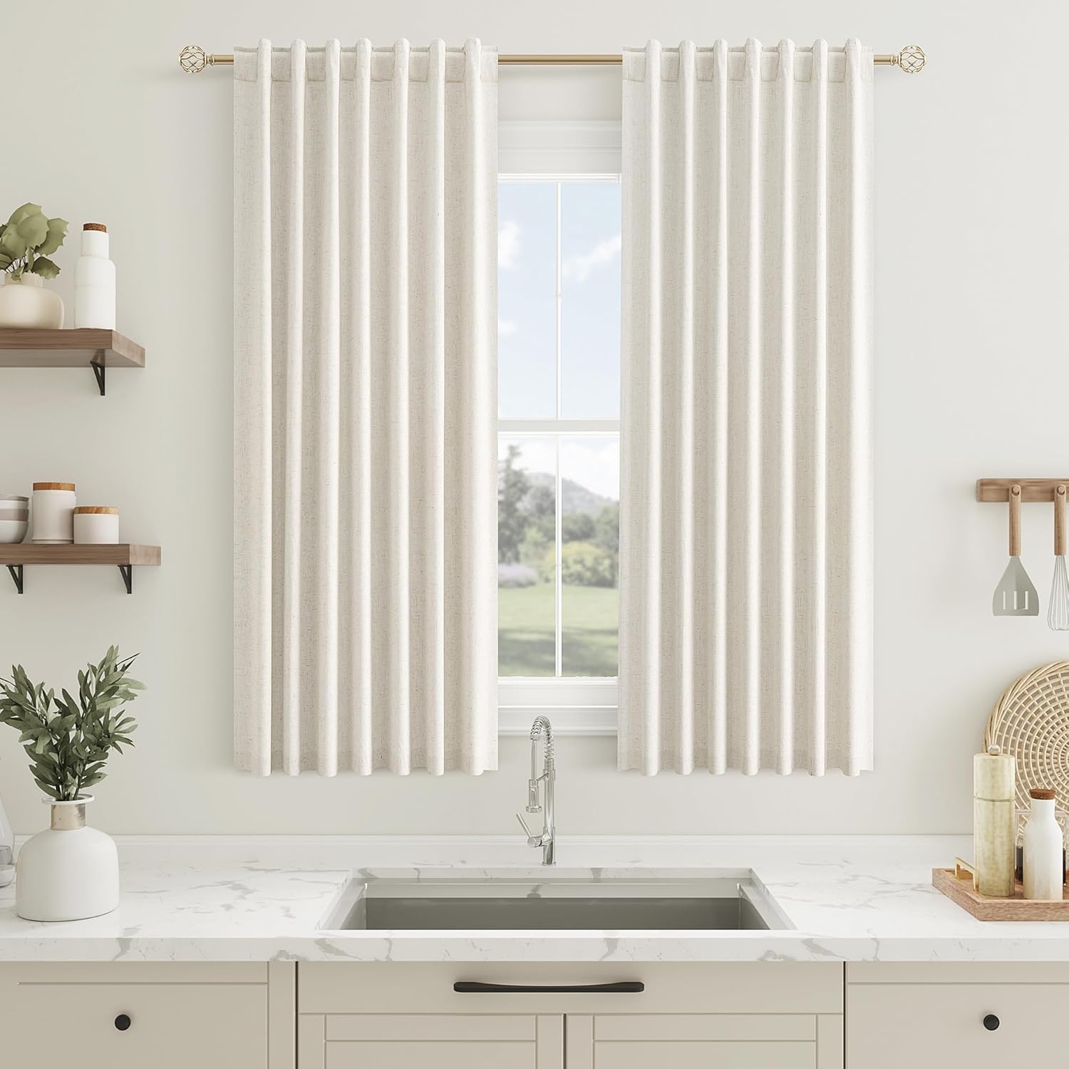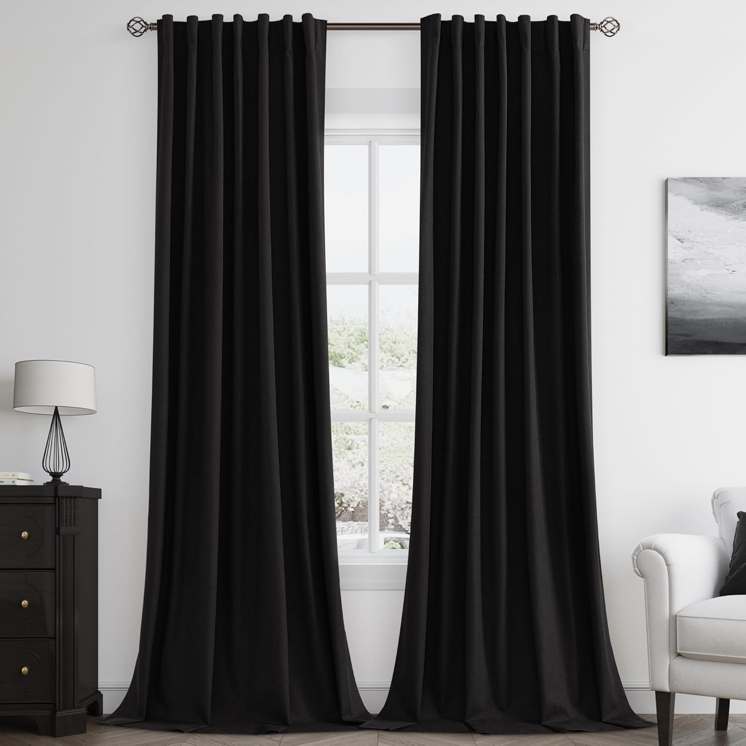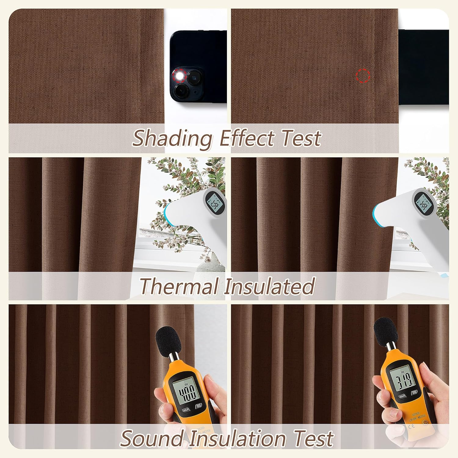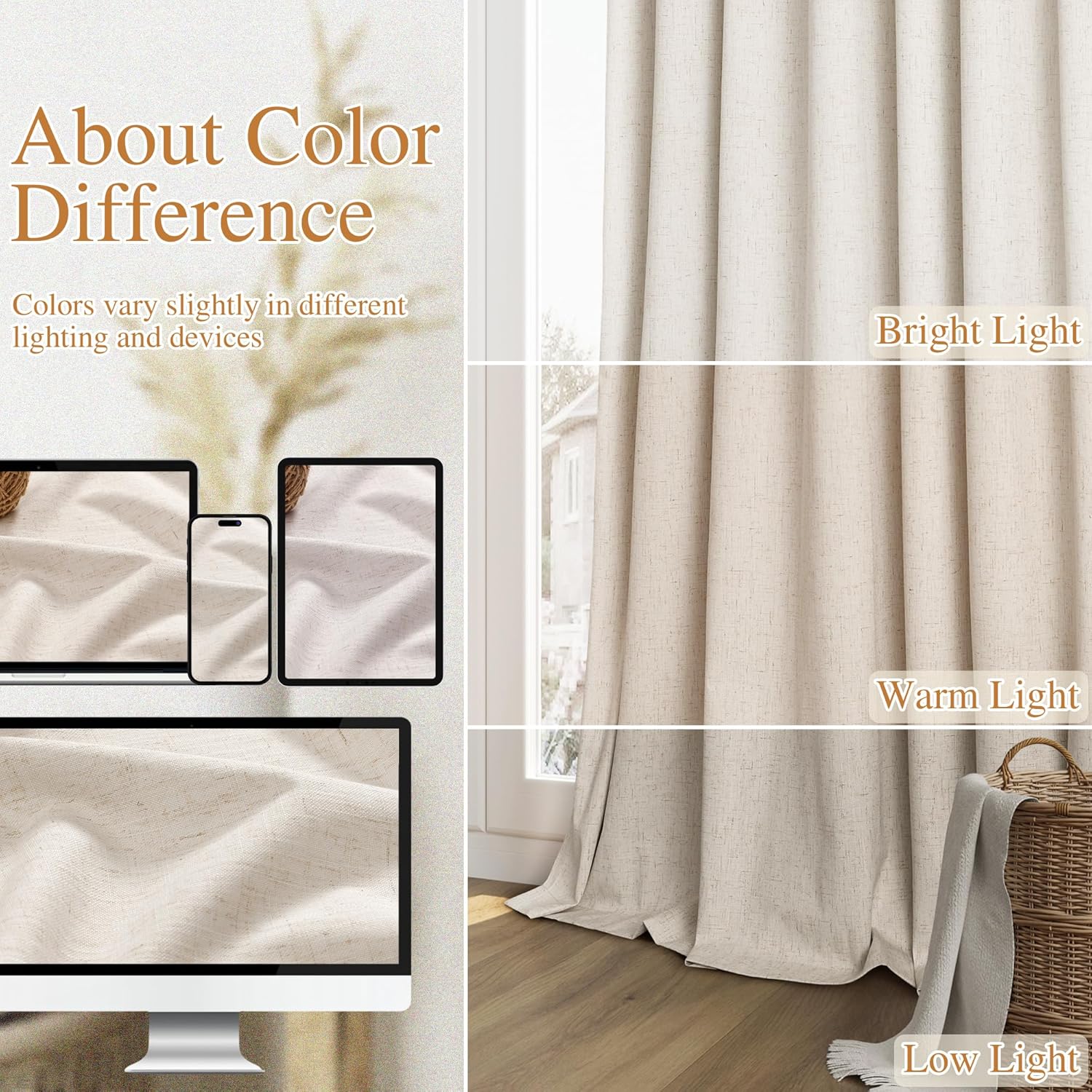 - 100% Blackout Curtains: A full blackout white coating is attached to the back of our linen curtains, blocking 100% of sunlight and UV rays. Provide you a complete private and personal space for a sweet sleep or rest. Good choice for bedrooms, nursery, living rooms, offices, patio door. Also perfect for babies, night shift workers and people sensitive to light