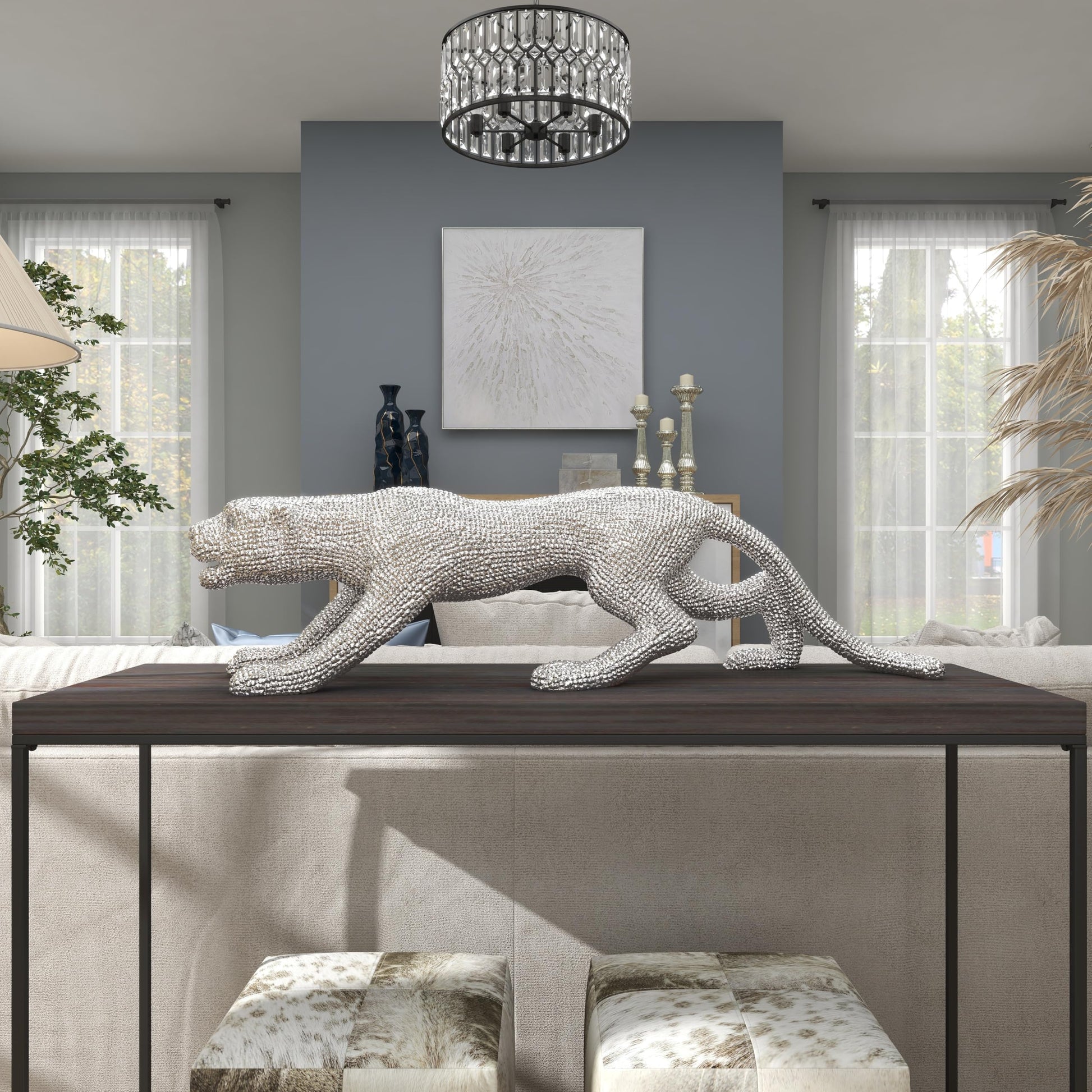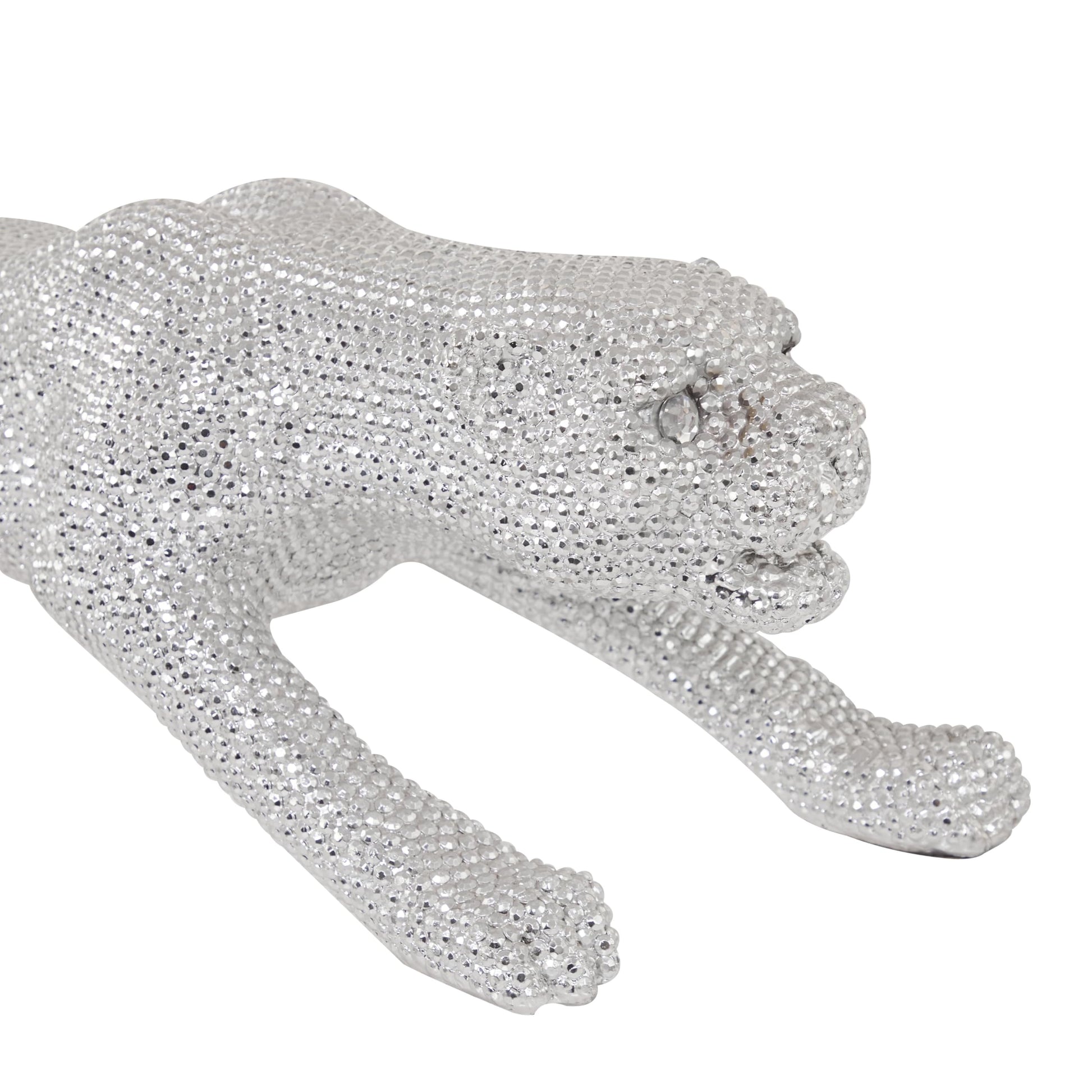 - LEOPARD ACCENT STATUE: Silver panther floor decor features rhinestones inspired textural body in a hunting position that creates a powerful statement display in any room