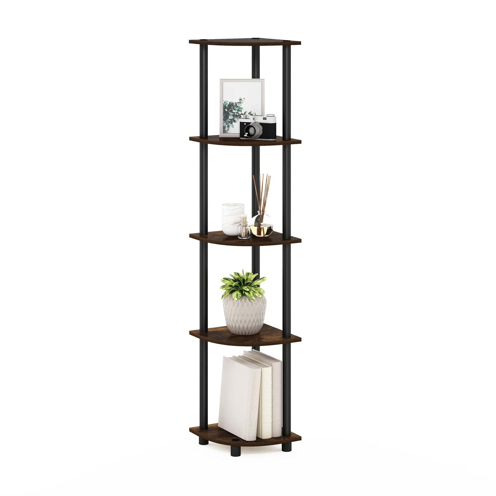 Furinno 5-Tier Corner Shelf, Espresso/Black