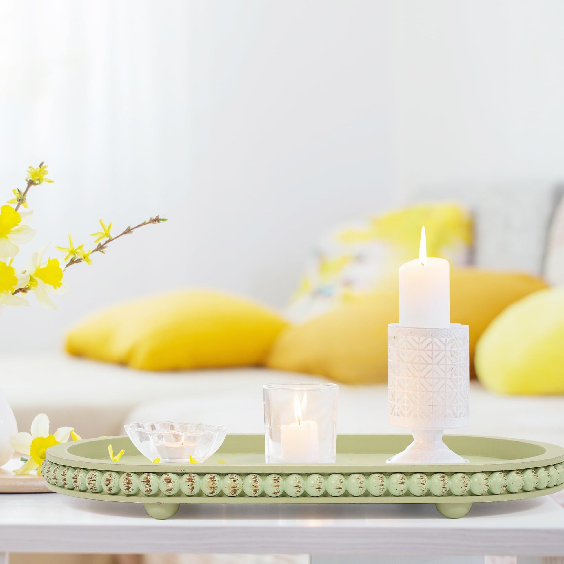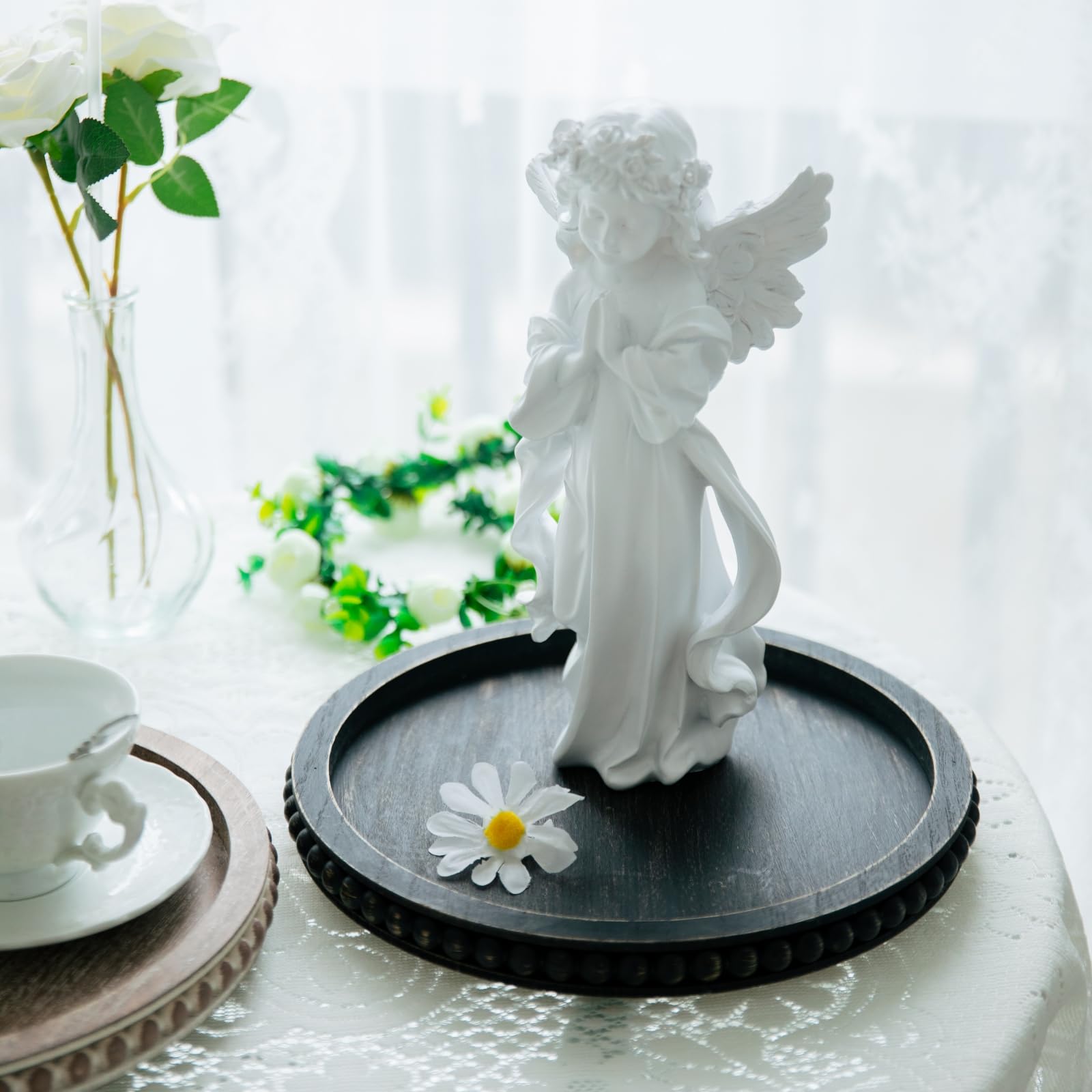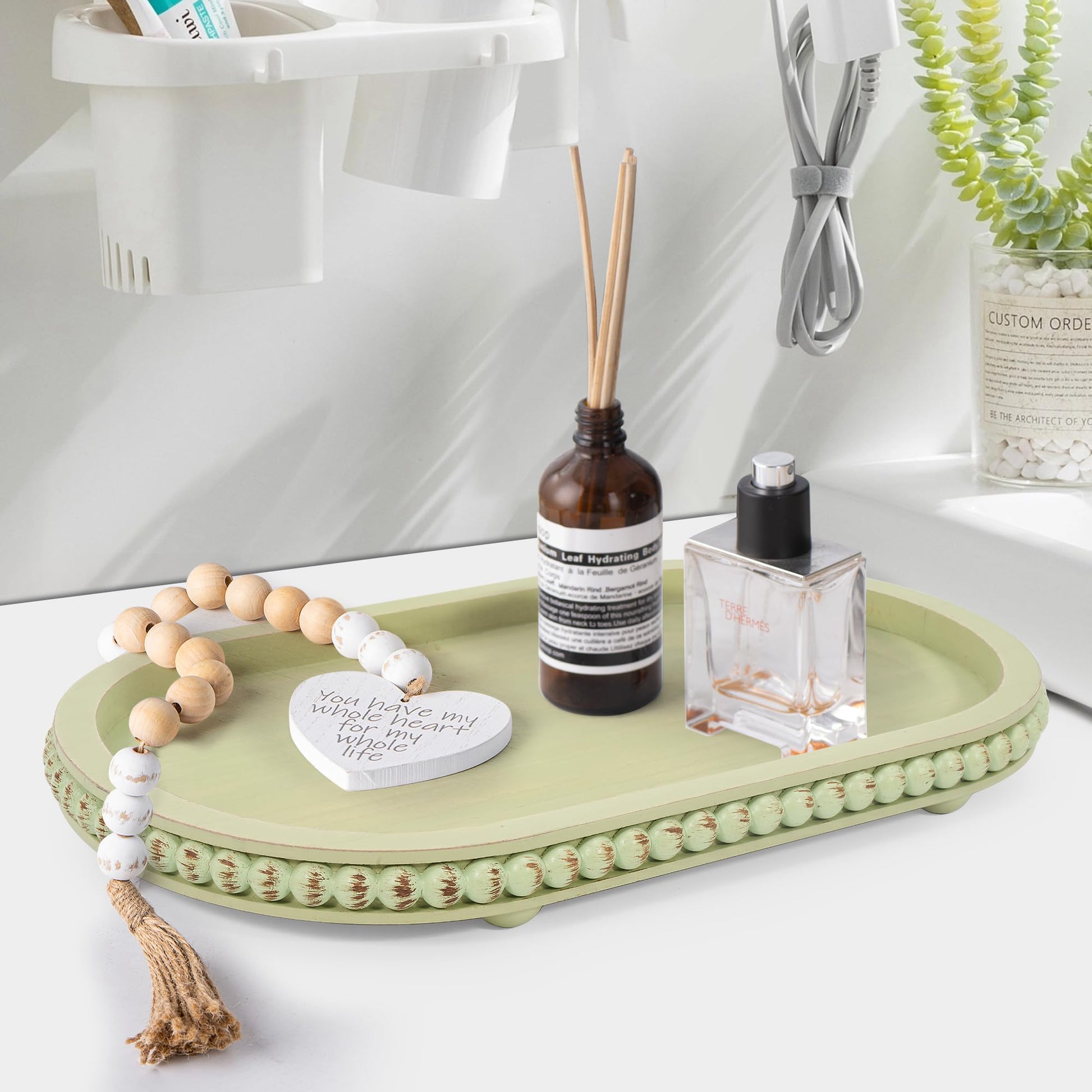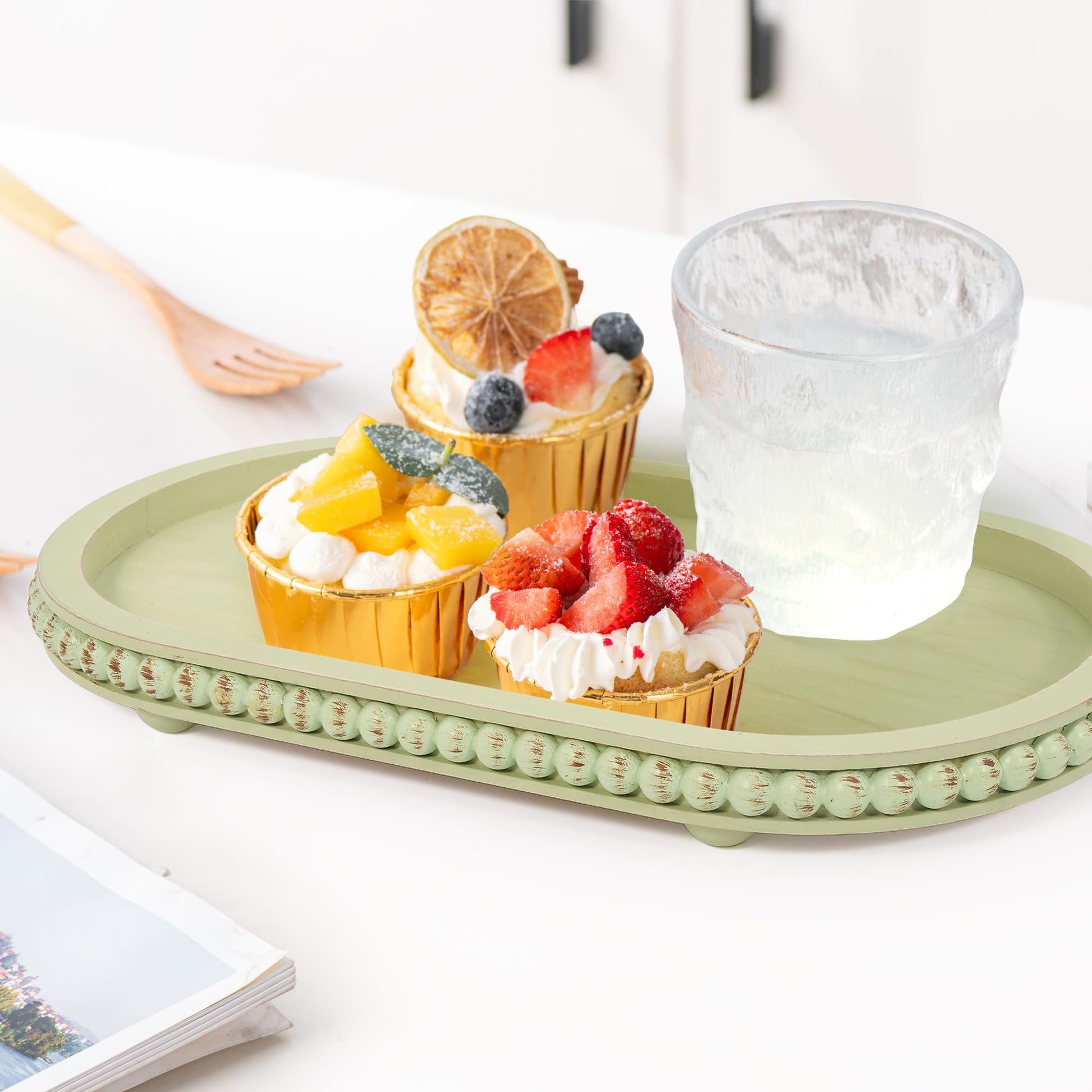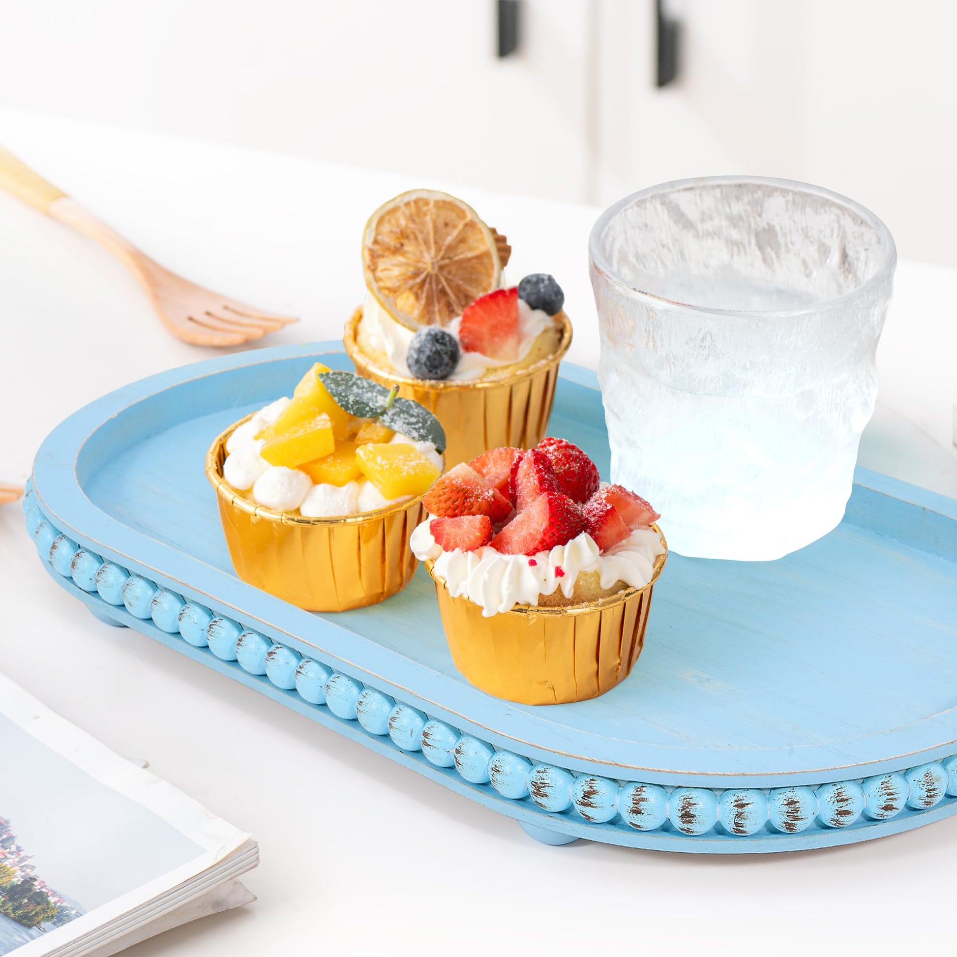- 【Gorgeous Beaded Tray】:The round beaded tray features special distressed bead accents.Match these items as living room decor, coffee table decor or farmhouse kitchen decor. The decorative tray itself is surely an eye catching and a conversation piece as it comes with unique bead accents around tray.Place it as a centerpiece on your kitchen counter, dining table, entry way table and MORE!