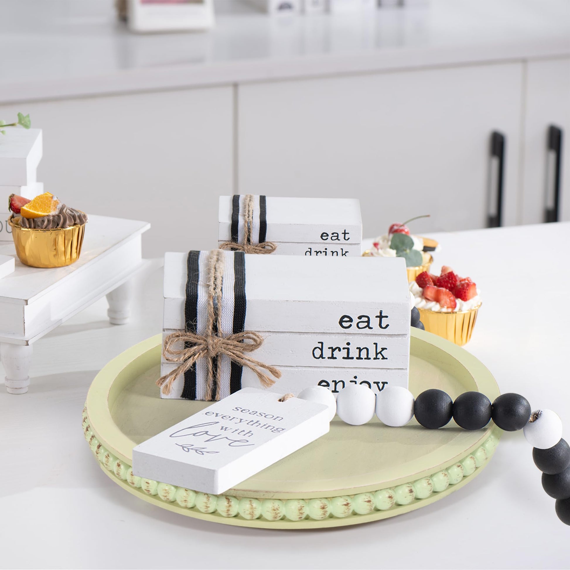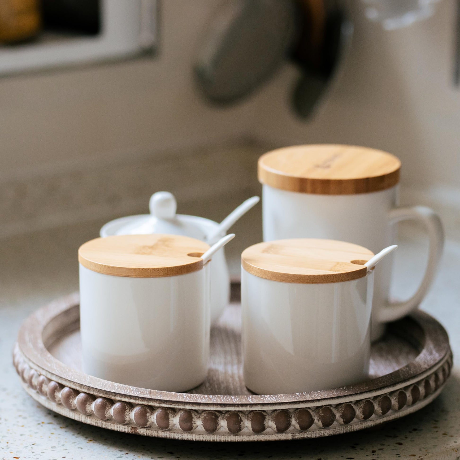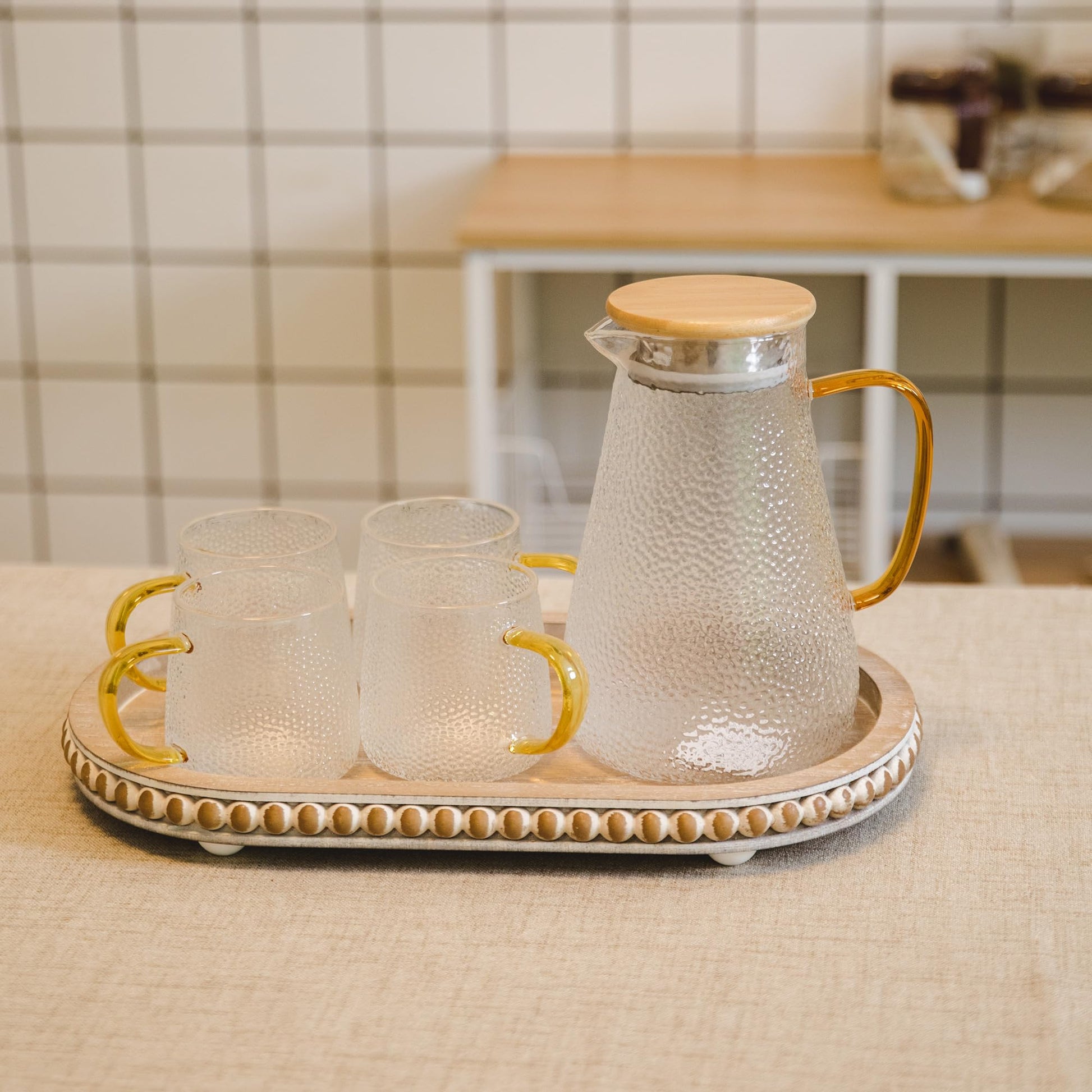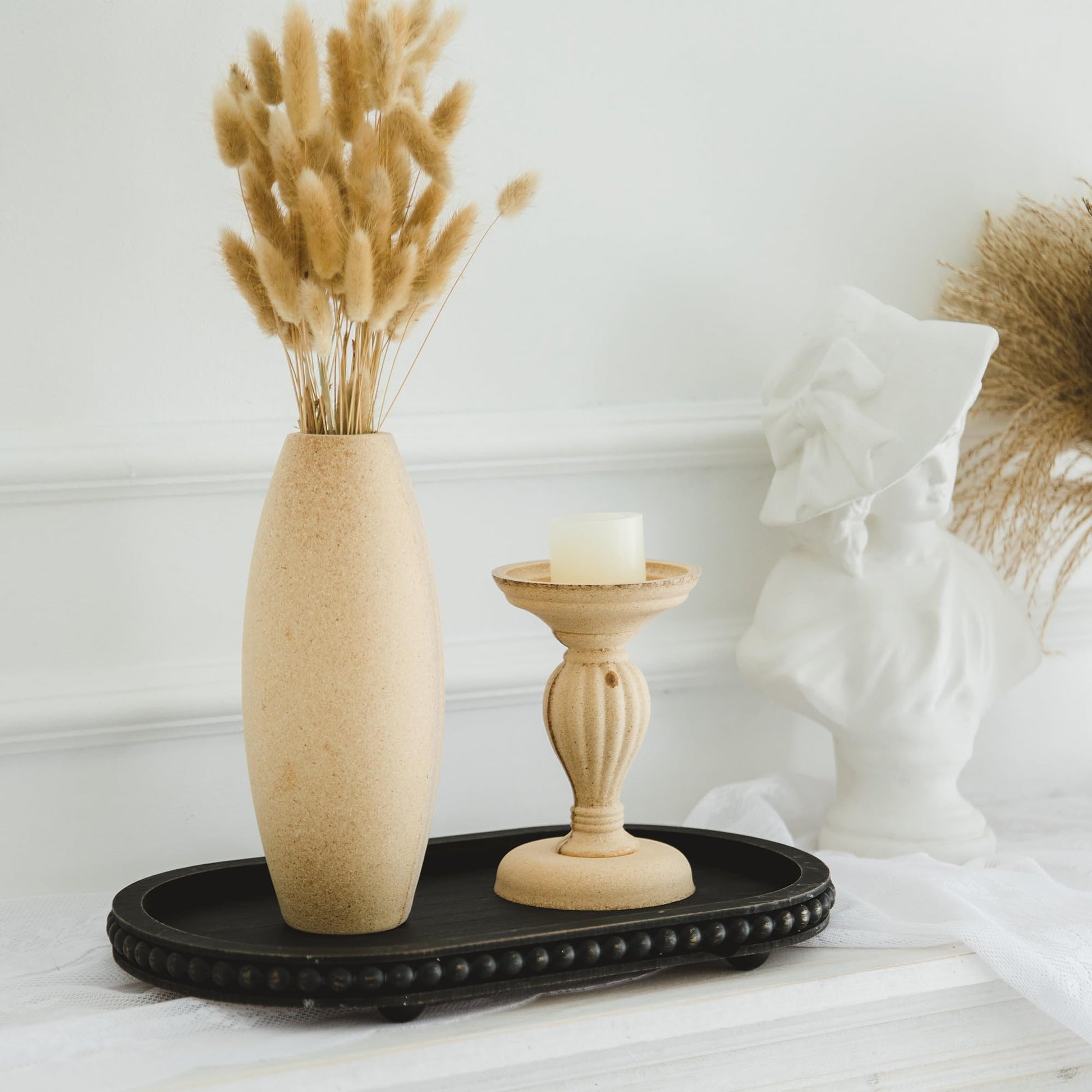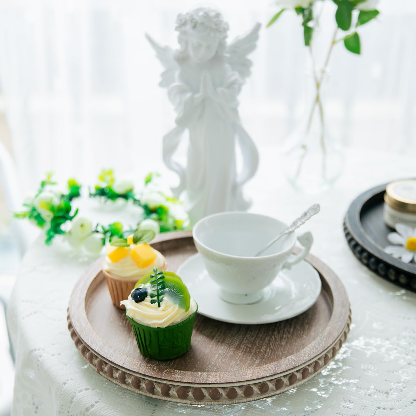 - 【Gorgeous Beaded Tray】:The round beaded tray features special distressed bead accents.Match these items as living room decor, coffee table decor or farmhouse kitchen decor. The decorative tray itself is surely an eye catching and a conversation piece as it comes with unique bead accents around tray.Place it as a centerpiece on your kitchen counter, dining table, entry way table and MORE!
