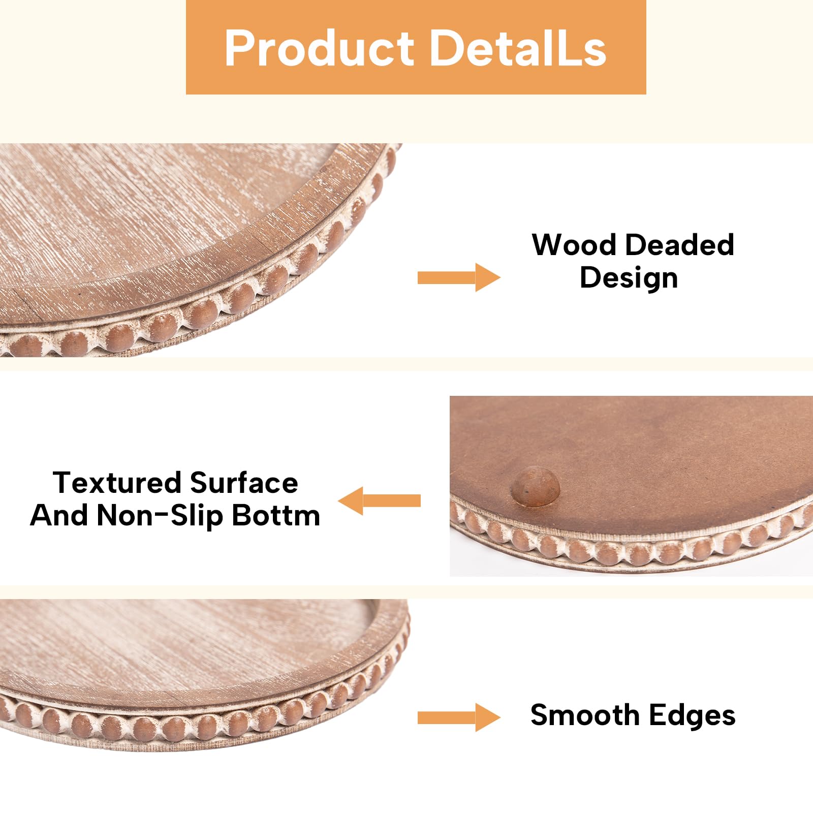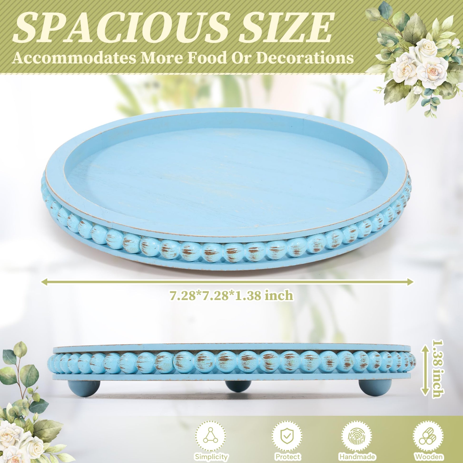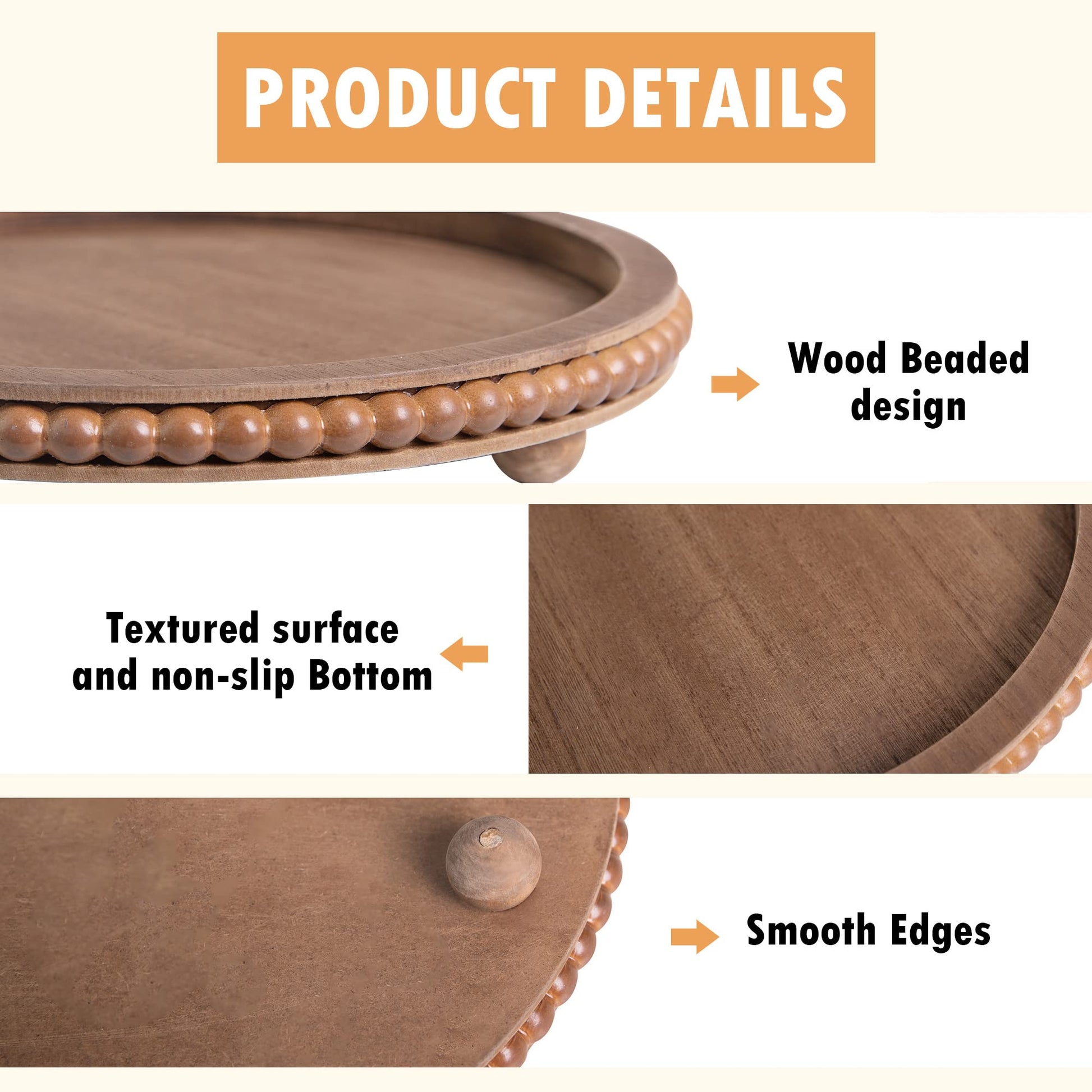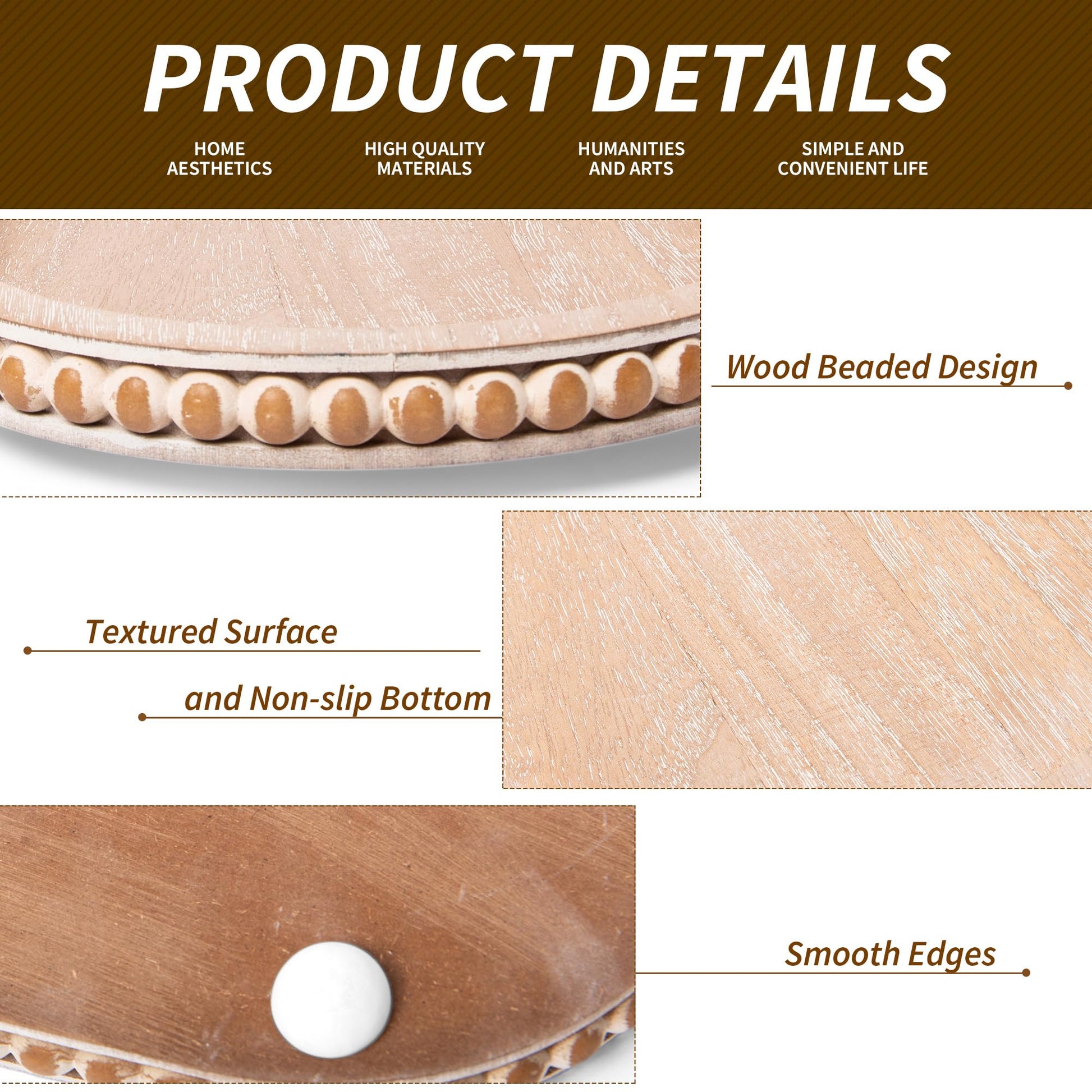 - 【Package Include】: You will receive a 12 inch round wood beaded tray , which has a farmhosue boho style to meet your decoration needs. The total height is about 2.12inch, including 1.12inch ball foot height and 1 inch tray height.