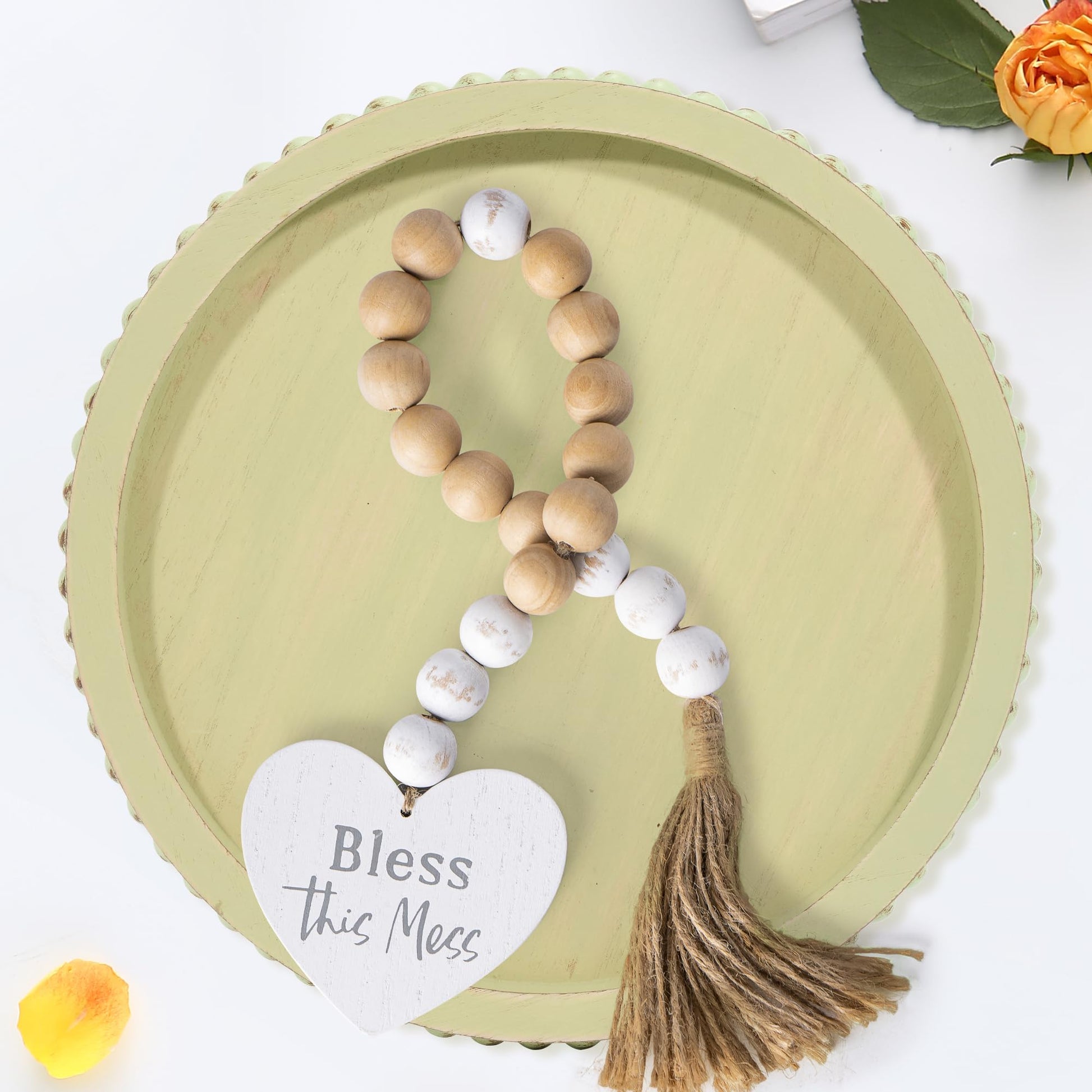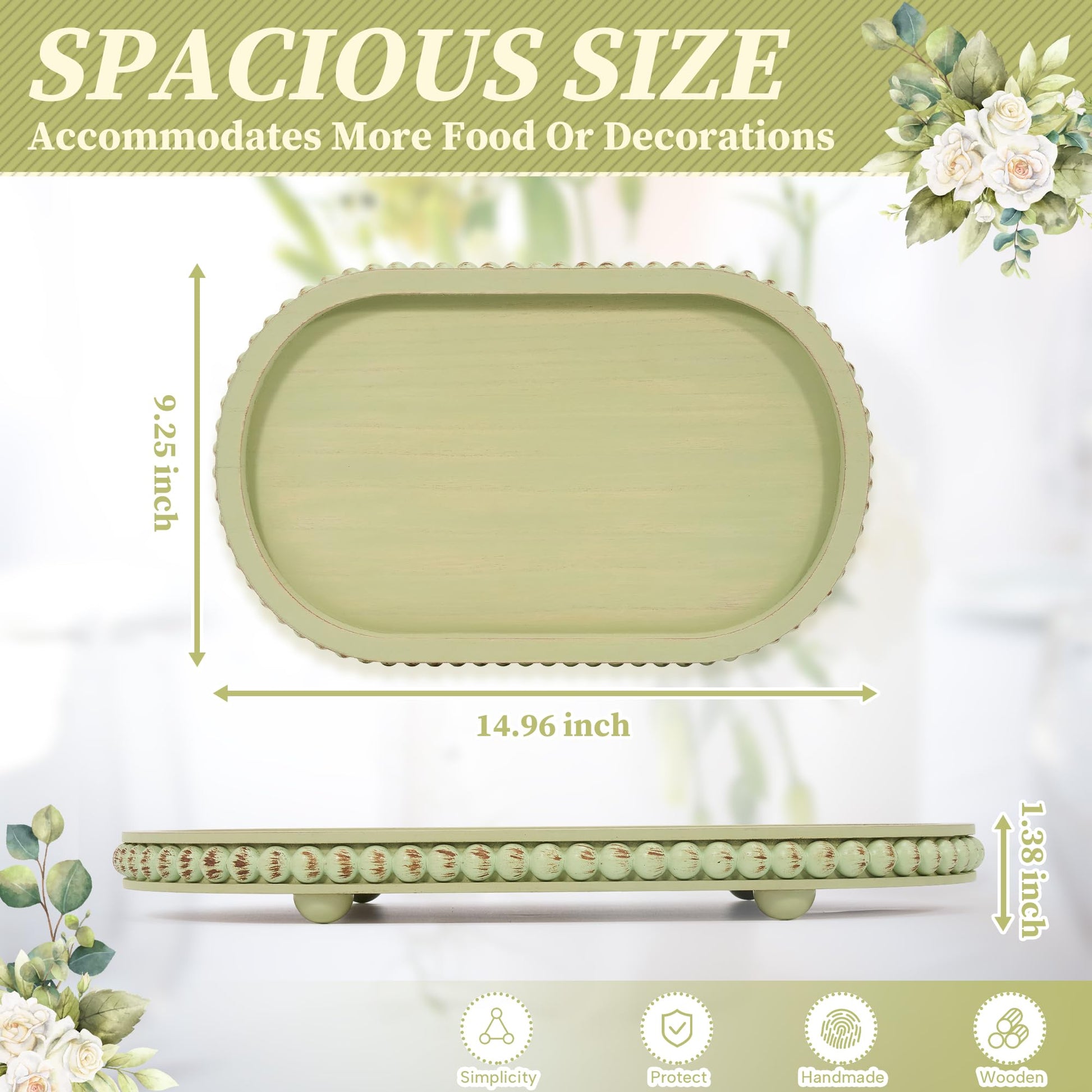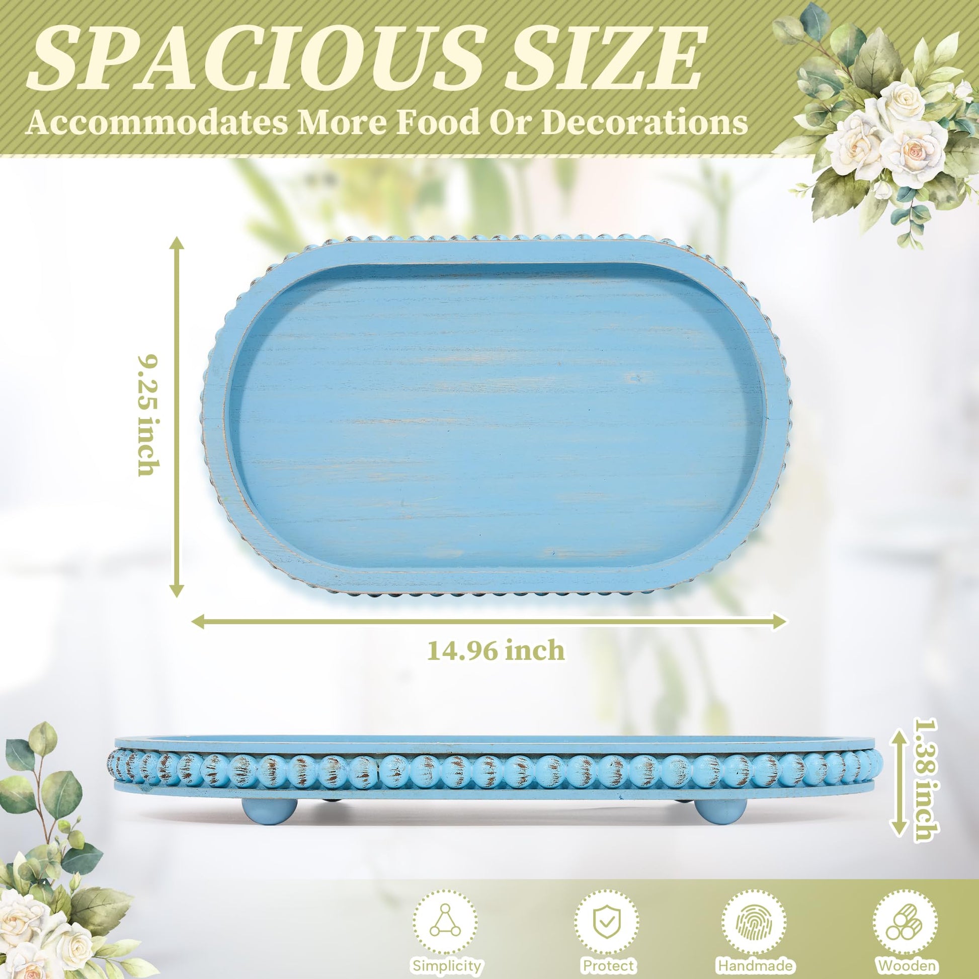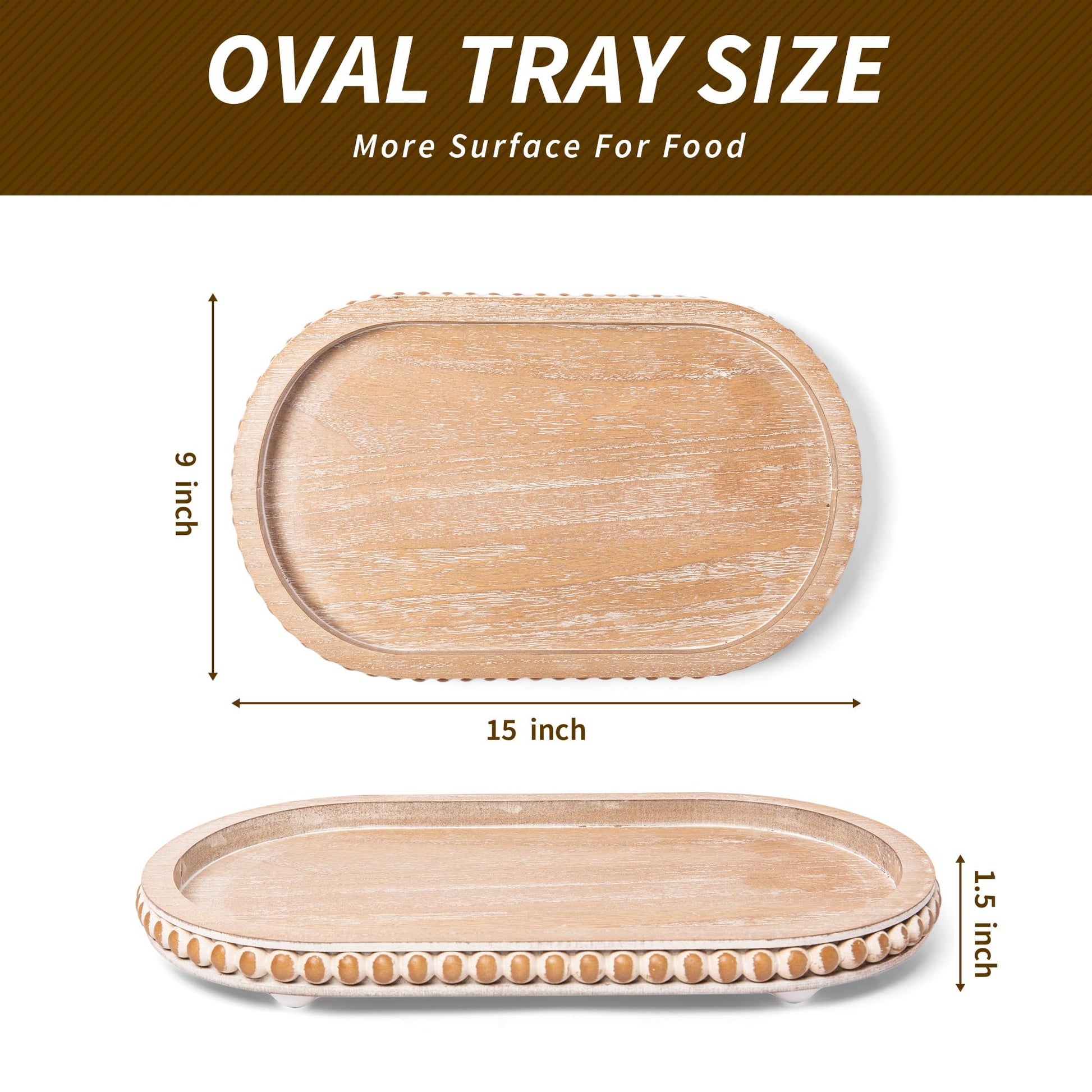 - 【Package Include】: You will receive a 12 inch round wood beaded tray , which has a farmhosue boho style to meet your decoration needs. The total height is about 2.12inch, including 1.12inch ball foot height and 1 inch tray height.