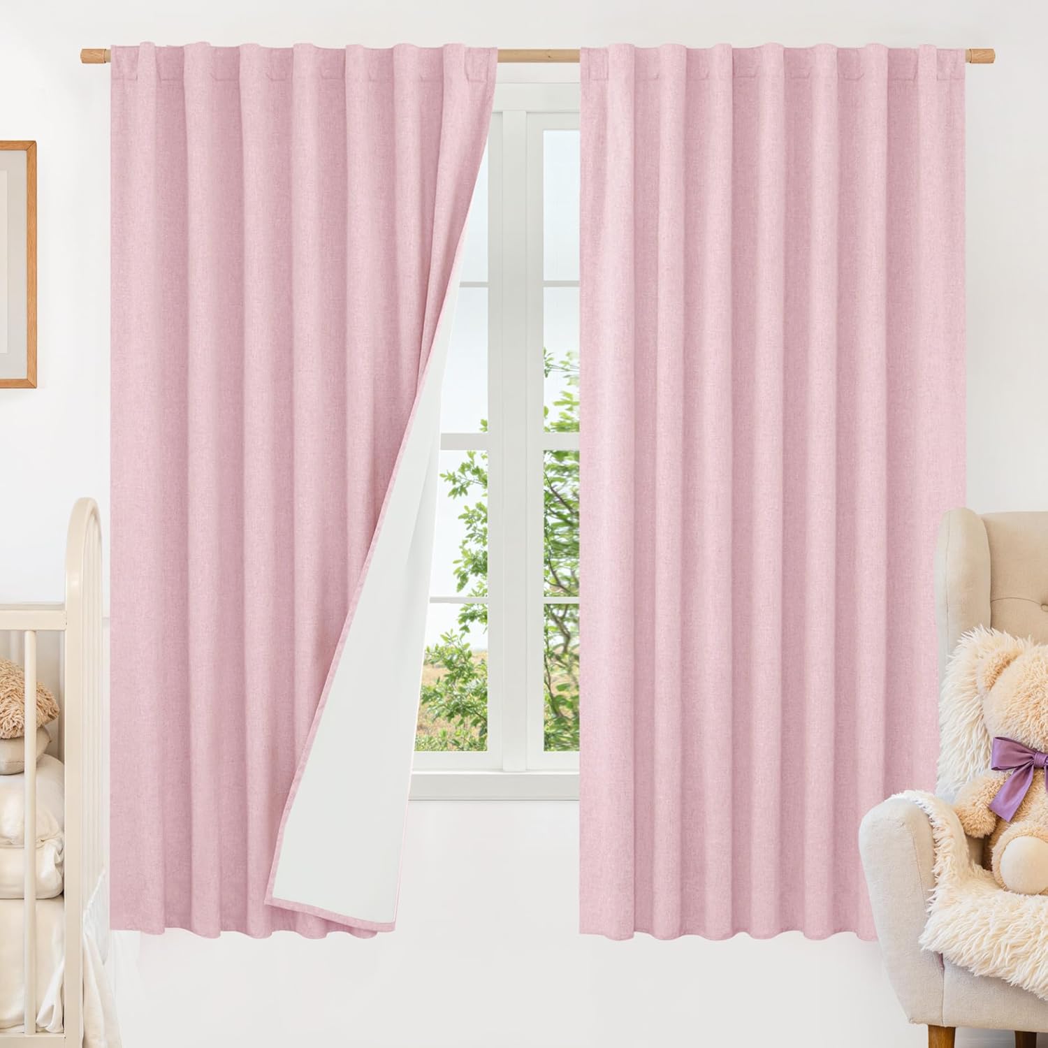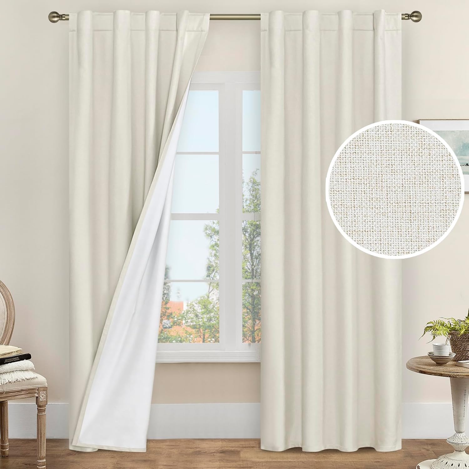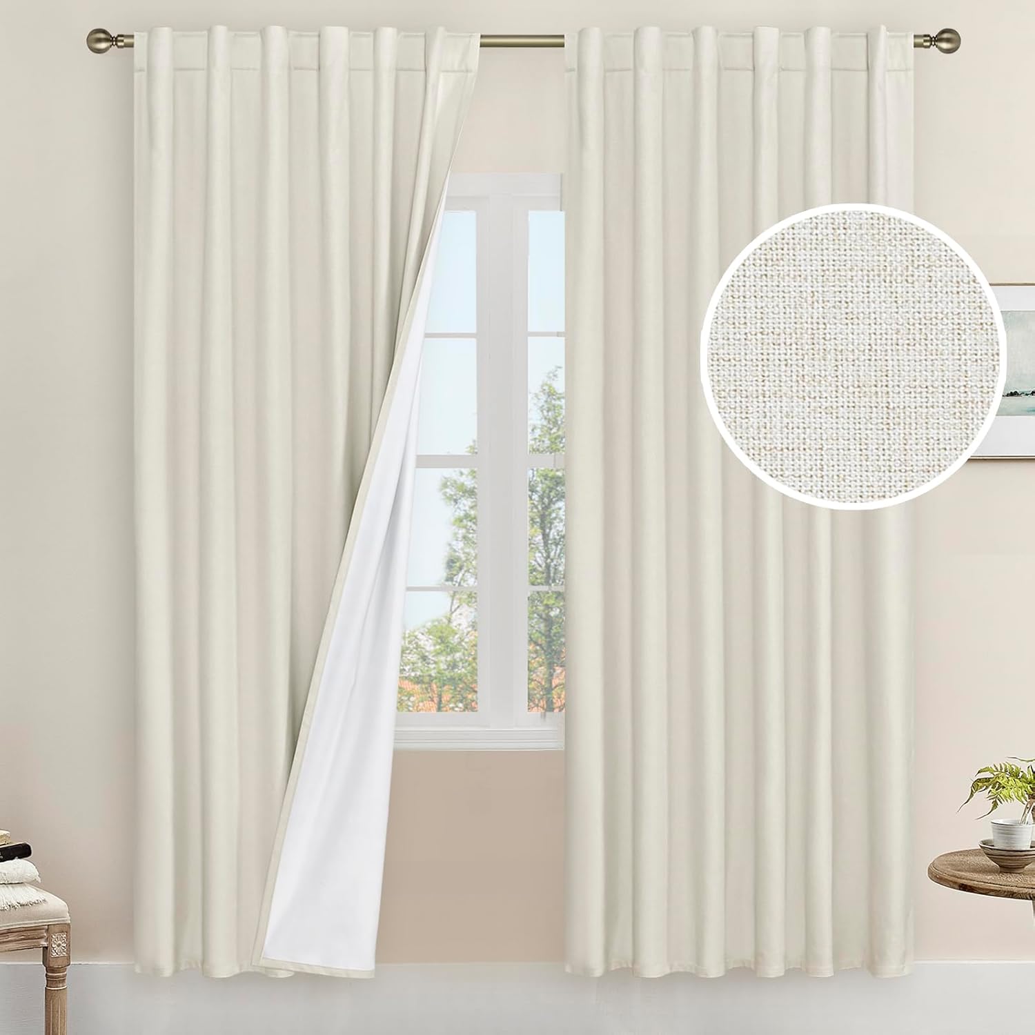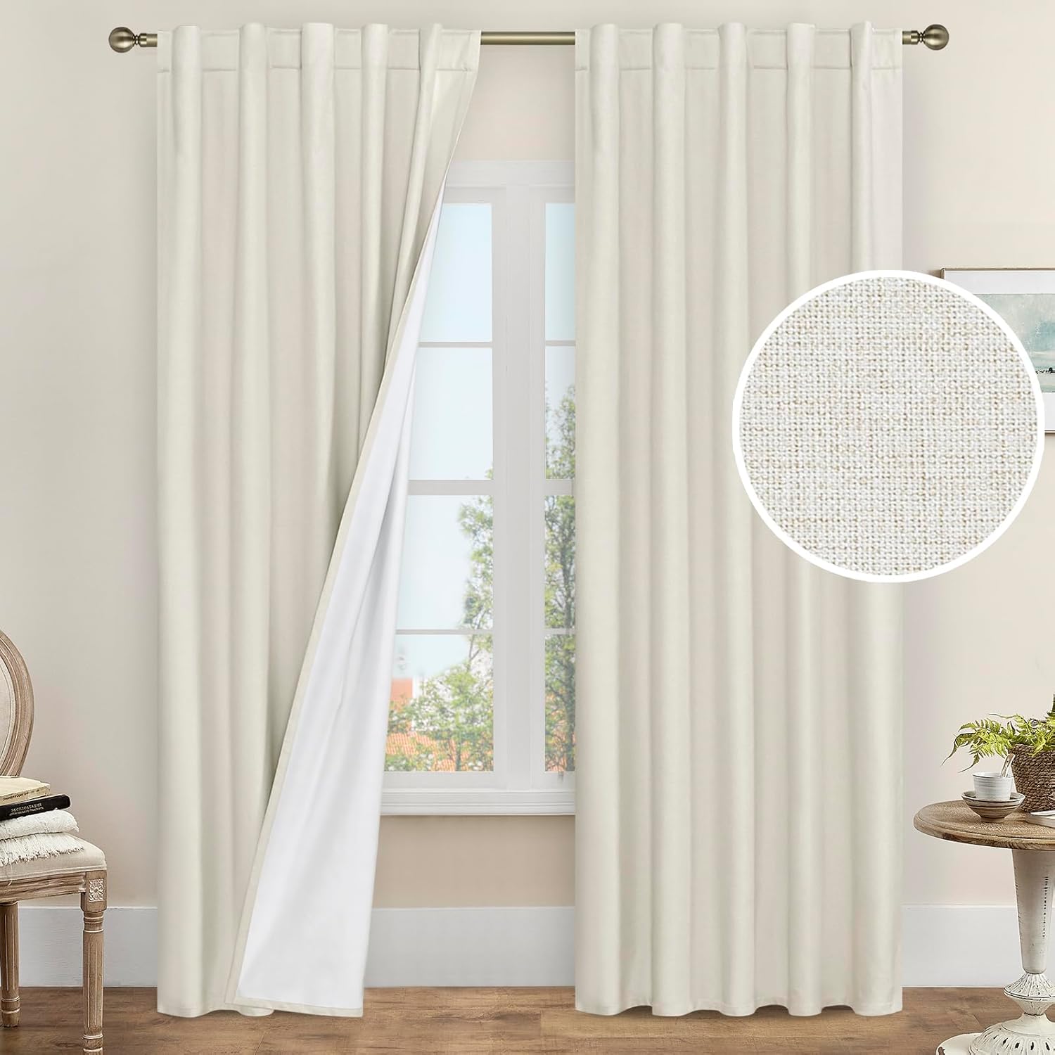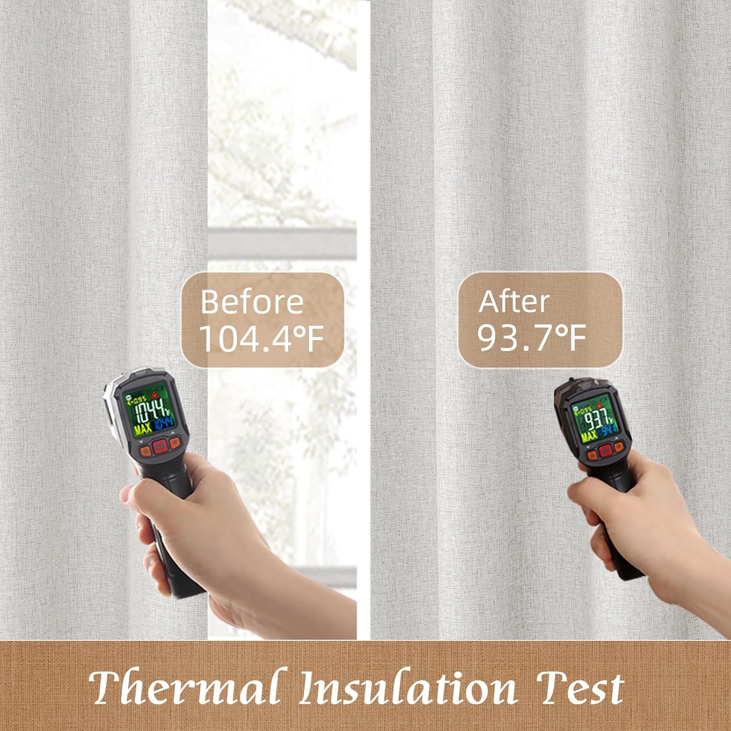 - 100% Blackout: Linen curtains are double layer curtains, the front of the curtain is linen fabric and back is the white lining, which can completely block the sunlight and provide a good sleeping environment during the day. Provides a safe and private space for you and your family to relax.