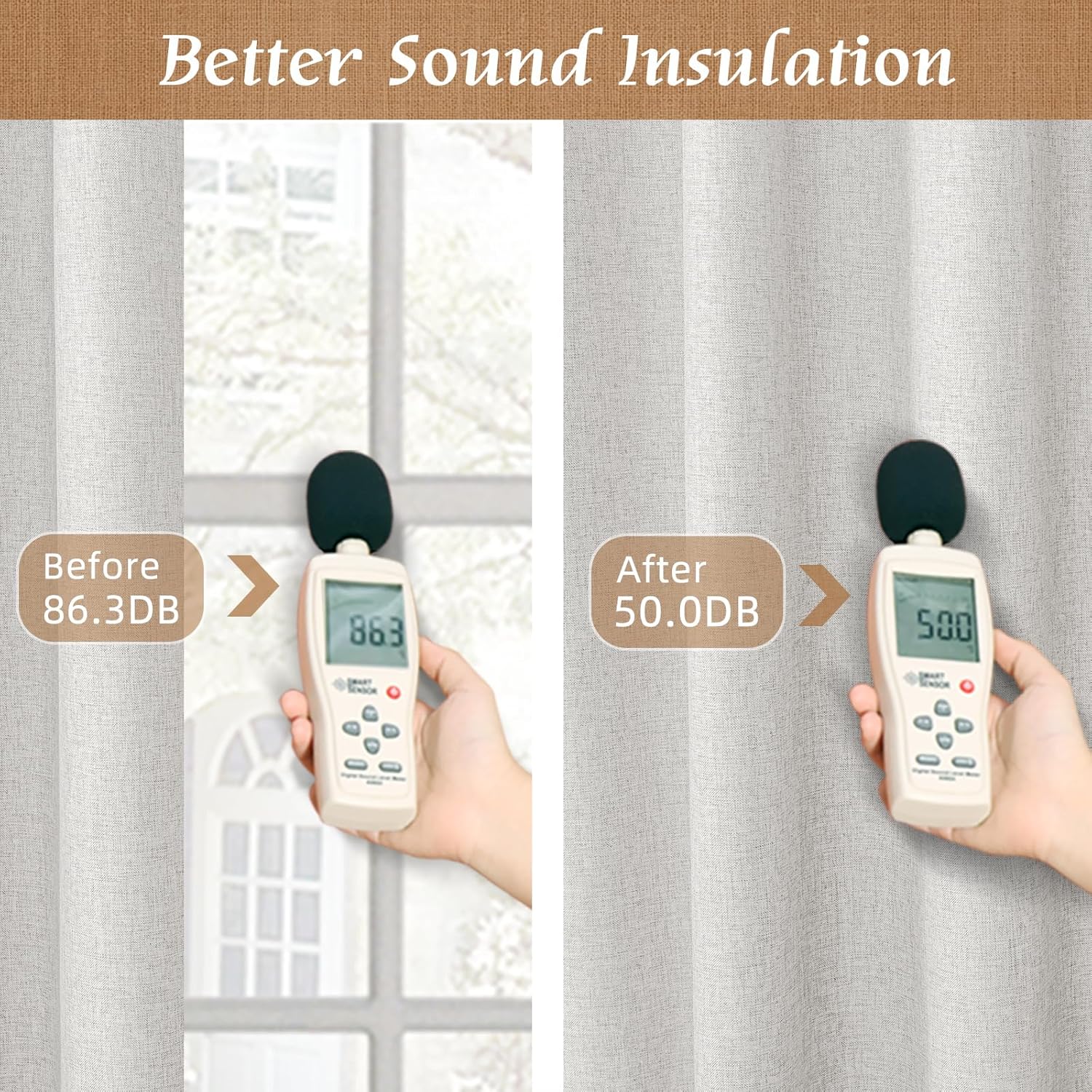 - Privacy Protected: These full blackout natural linen textured curtains provide a casual and relaxed atmosphere in the room. The denser and thicker fabric also seems to offer more privacy and light-blocking capabilities compared to ordinary linen curtains.