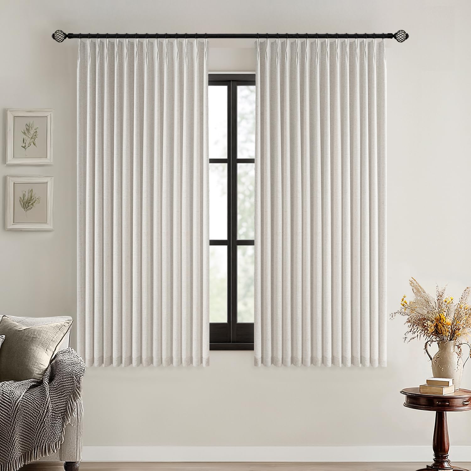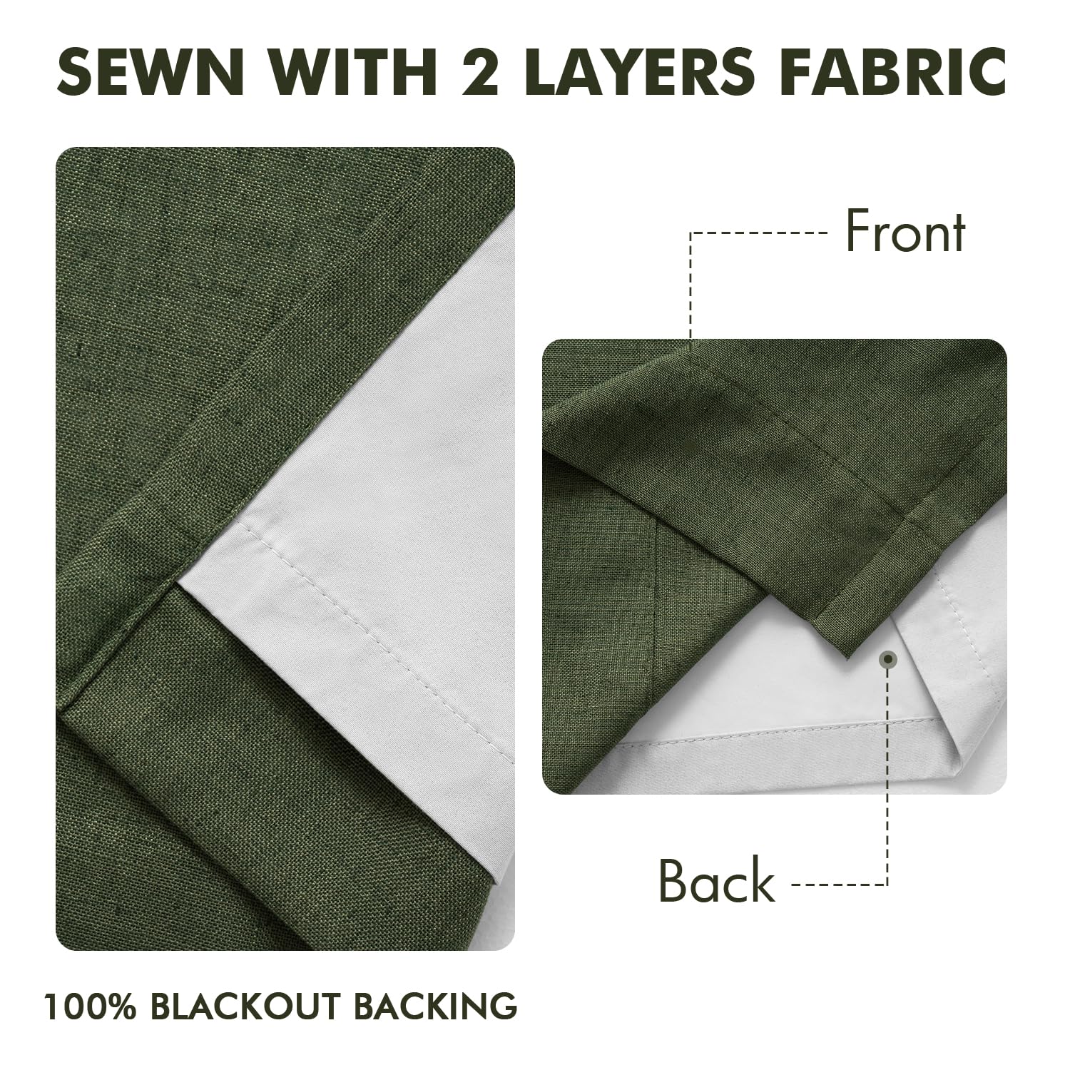 - Dual-Layer 100% Blackout Curtains: Crafted with dual-layer construction, these curtains combine a soft high-density linen outer layer and thick white blackout lining. The inner layer blocks 100% sunlight/UV rays, provides thermal insulation (summer/winter comfort), and reduces noise. Enhances privacy while regulating temperature year-round. Natural linen texture delivers organic warmth and sophistication, creating a serene yet elegant ambiance through tactile depth