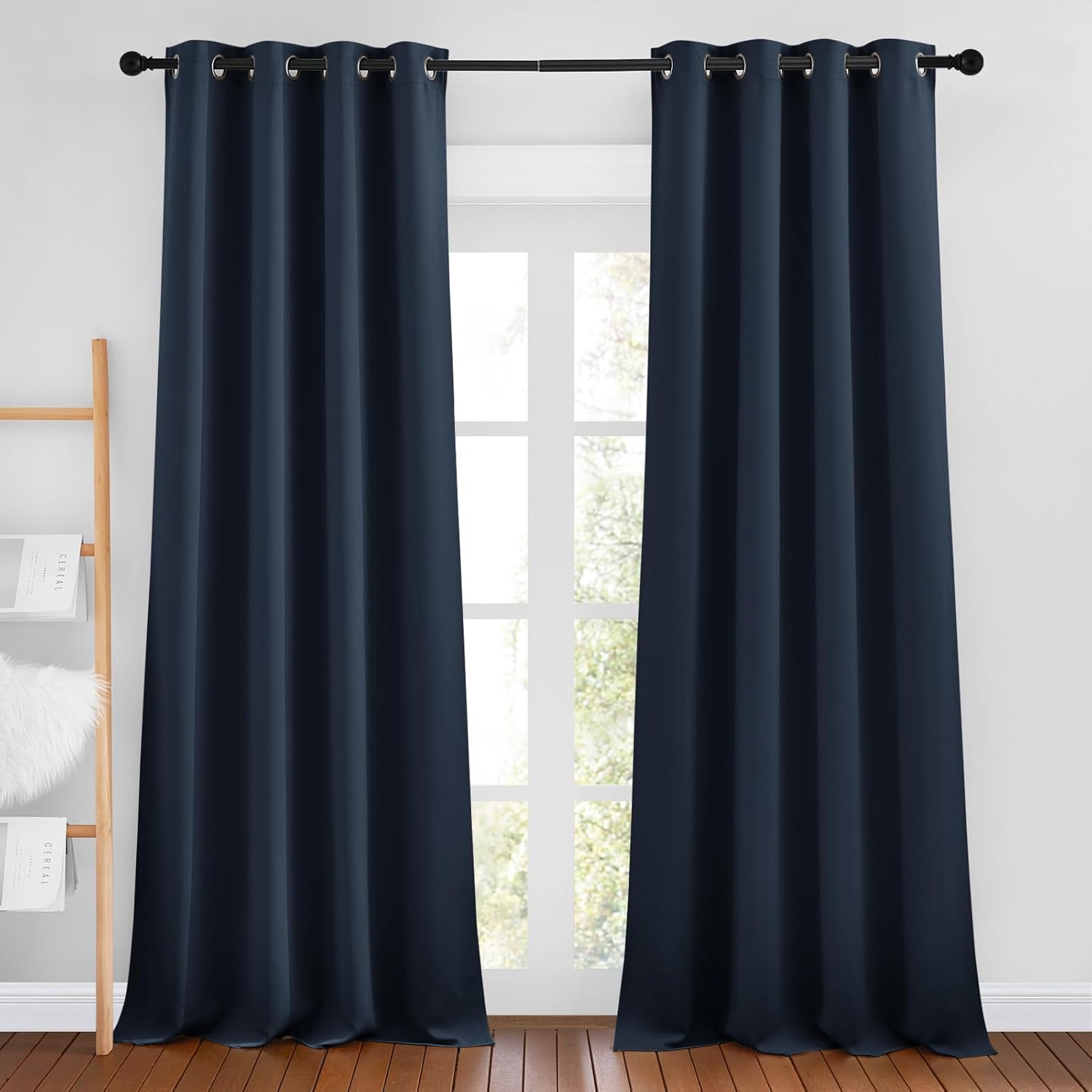 - Amazing Material: Super heavy and soft Blackout Curtain Panels are very upmarket. Besides, 85%-99% light blocking, thermal insulated, soundproof, and energy-efficient. Thread trimmed and wrinkle-free, both sides are the same color.