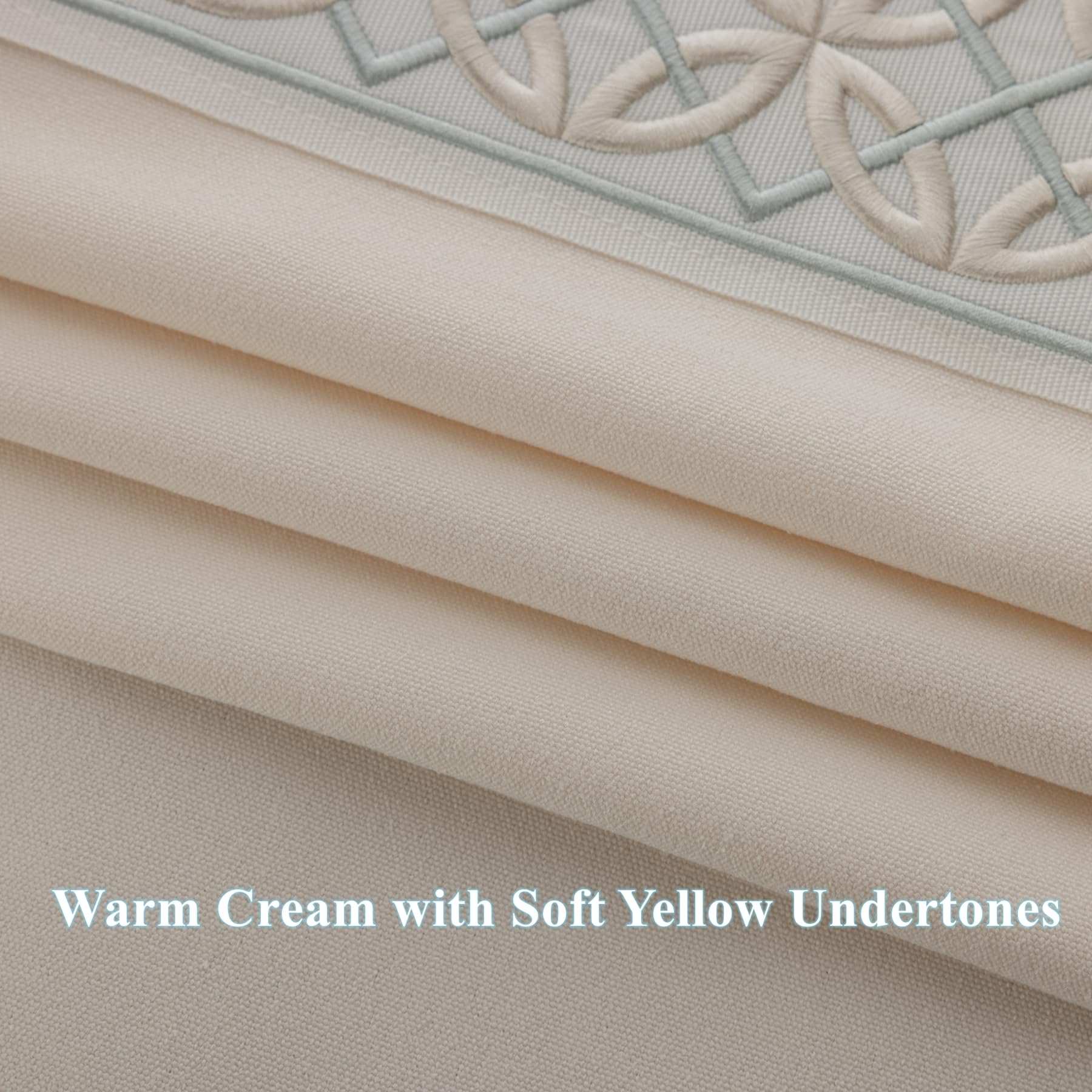 - PREMIUM DESIGN: Cotton-linen blend curtains featuring elegant embroidered geometric trim and pinch pleat styling create a luxurious window treatment that elevates any room's decor