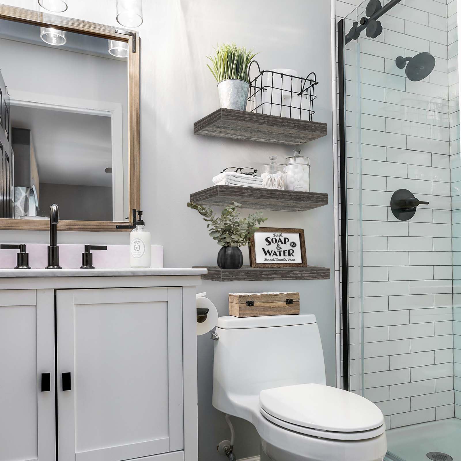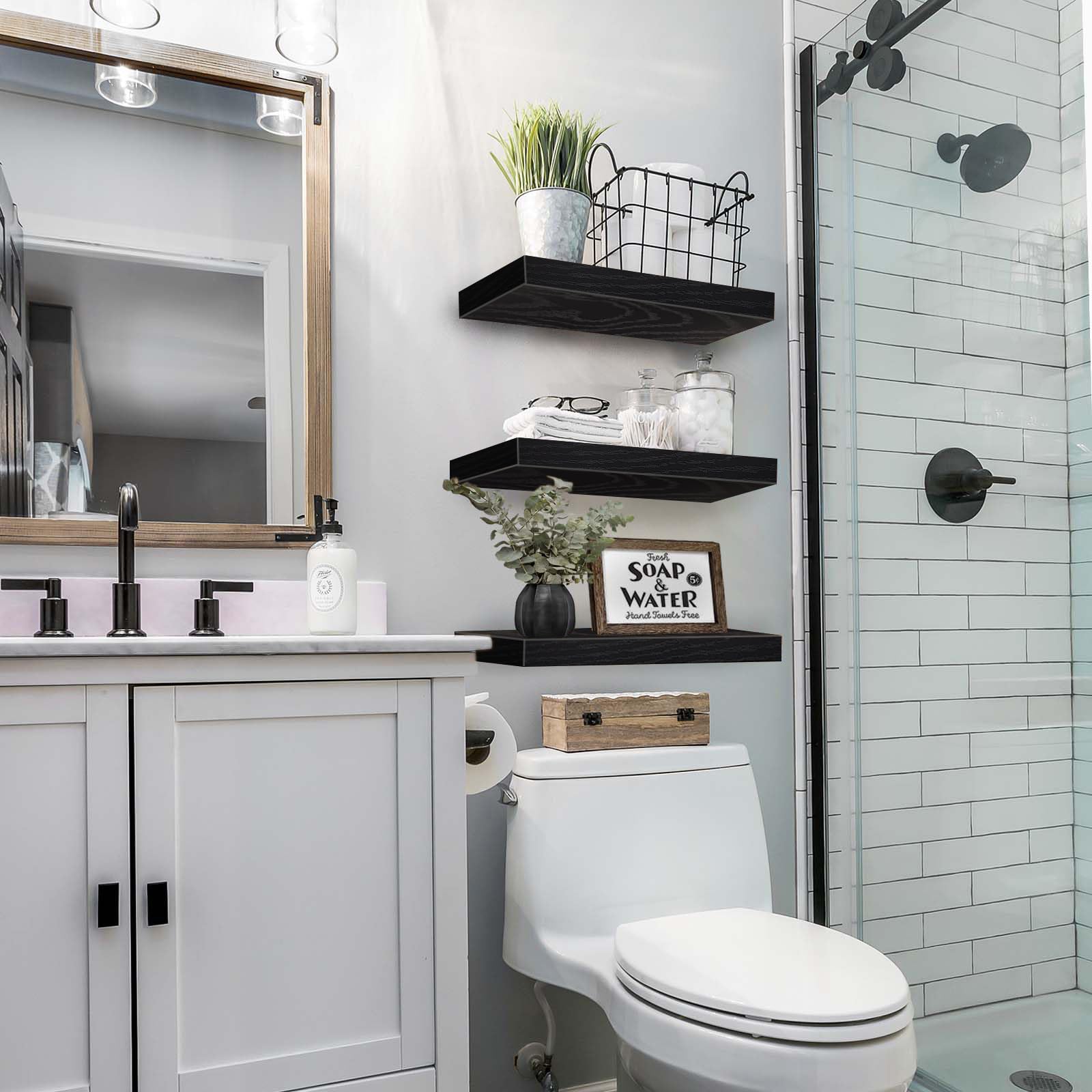 - More Depth: 6.7"D x 15.7"W x 1.5"H. 6.7" depth suitable for books, basket, toilet paper or bath towels. Contains 3 shelves perfect for small space and freedom combination