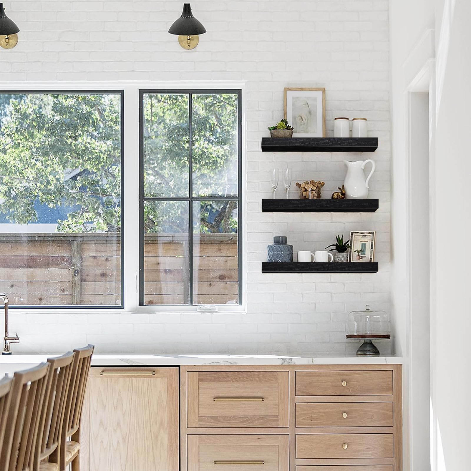 QEEIG Floating Shelves, 3pcs, Rustic Brown