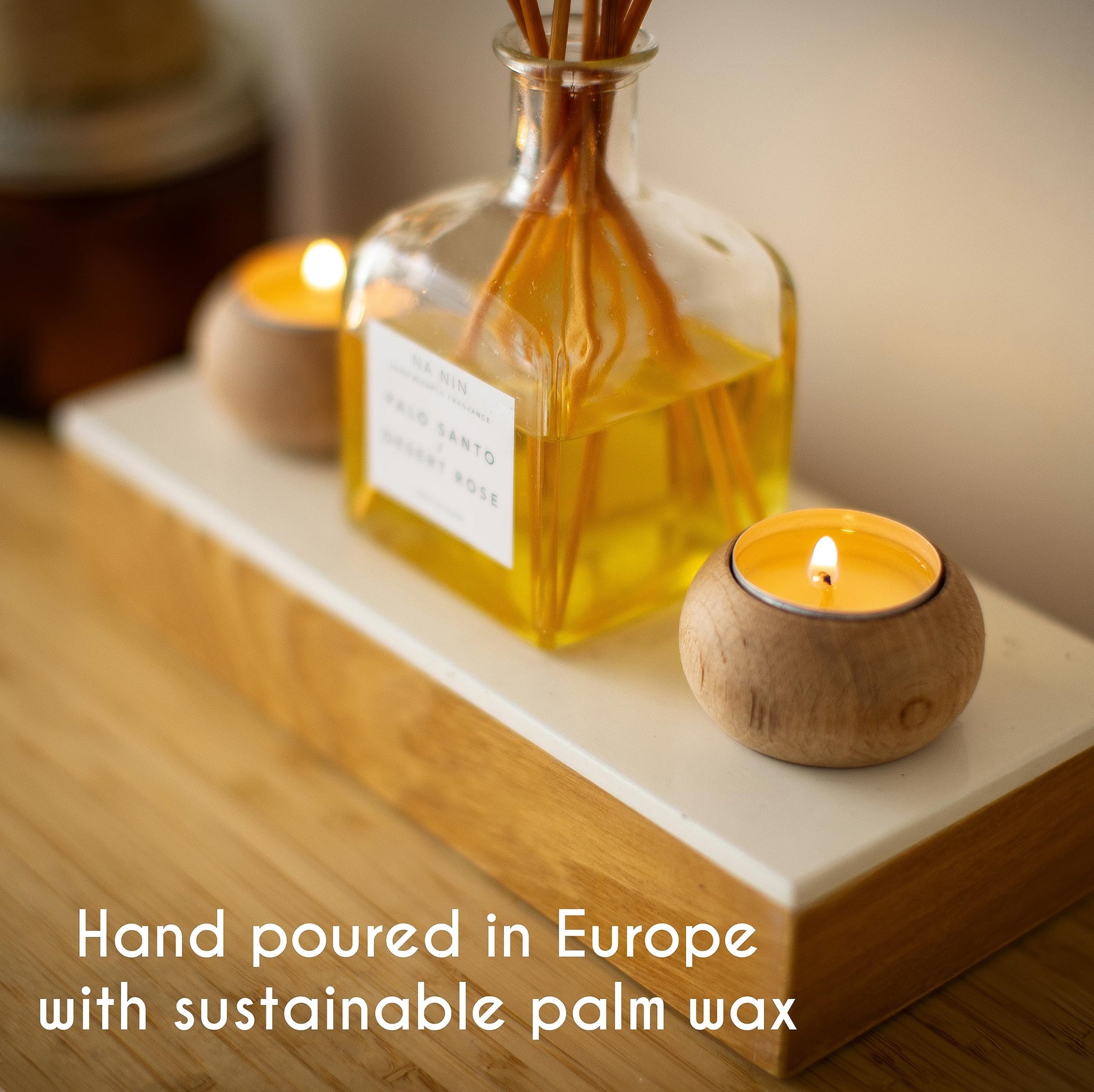 - SUSTAINABILITY: Experience the extended burn time of Stonebriar’s tea candles, hand poured with sustainable palm wax in Europe. These small candles offer a 6 to 7 hour burn time, supporting sustainable practices while delivering superior candle experience.