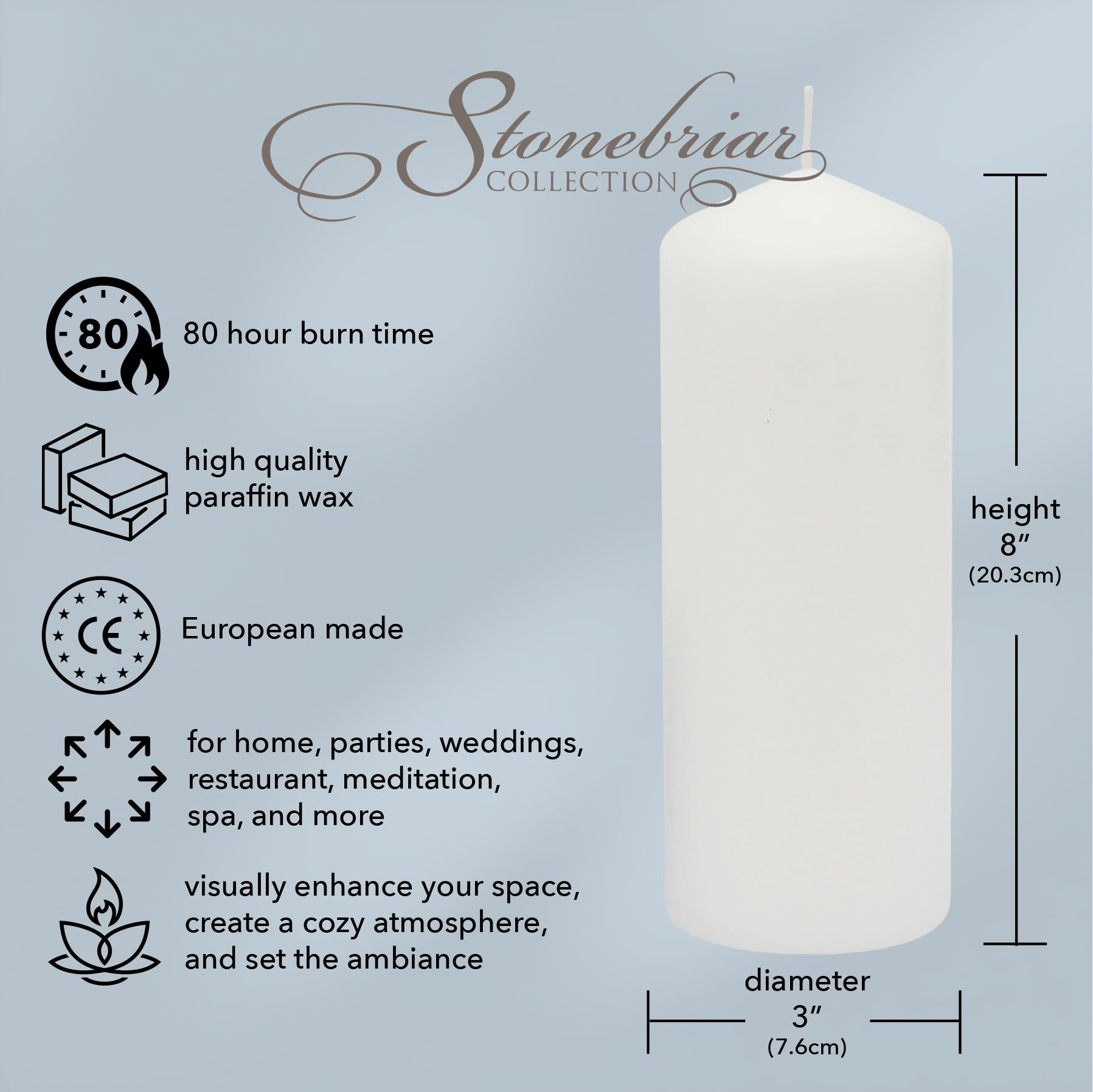 - VERSATILITY: Discover the versatility of our white candle, the perfect size for large and medium candle lanterns, glass hurricanes, and centerpieces. This candle bulk enhances the aesthetic appeal of any space, creating a warm, welcoming vibe.