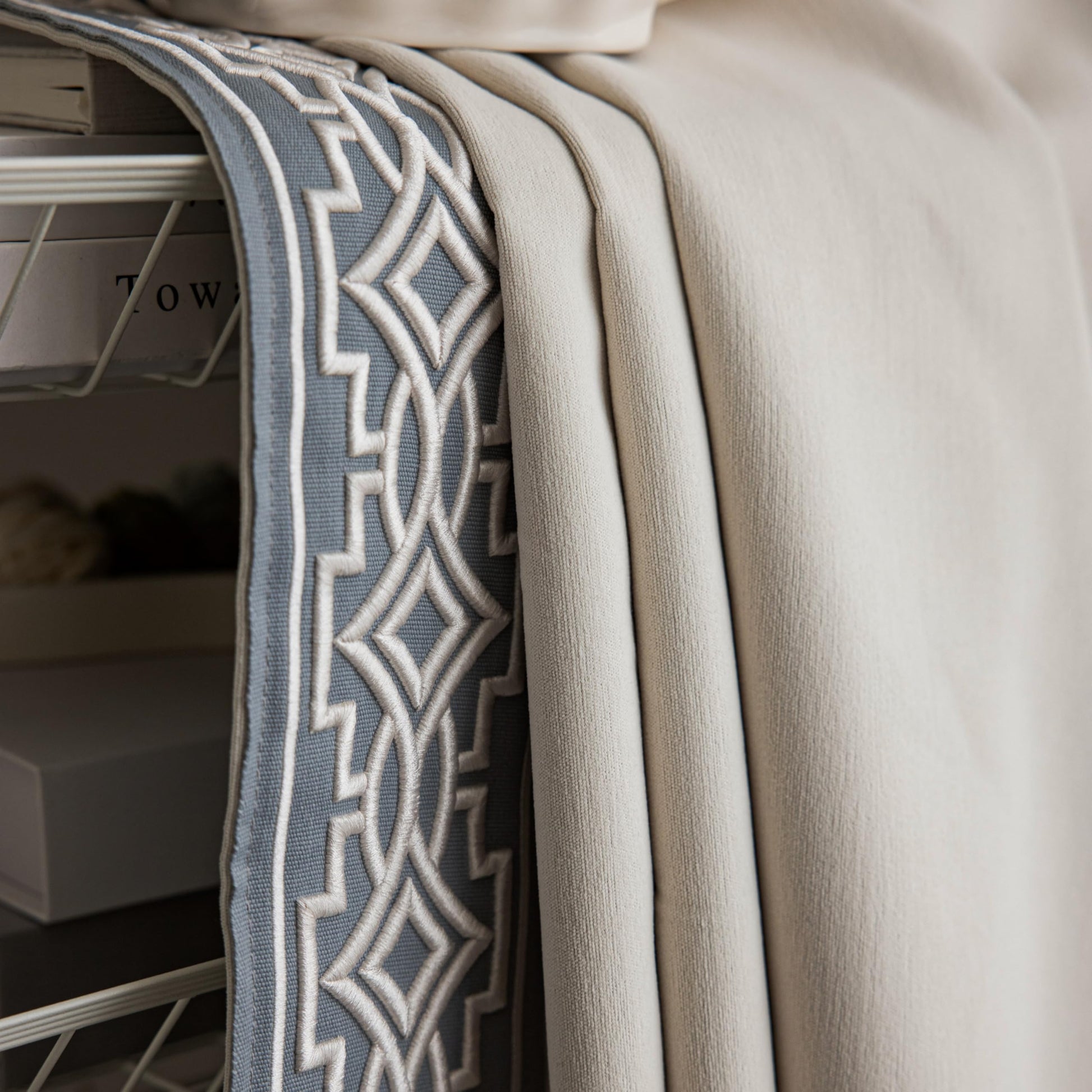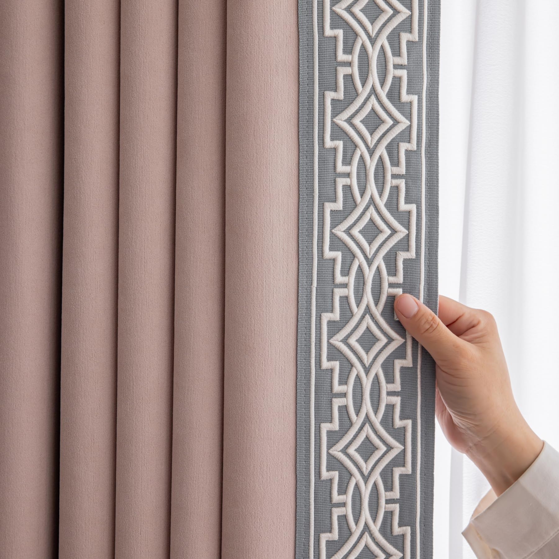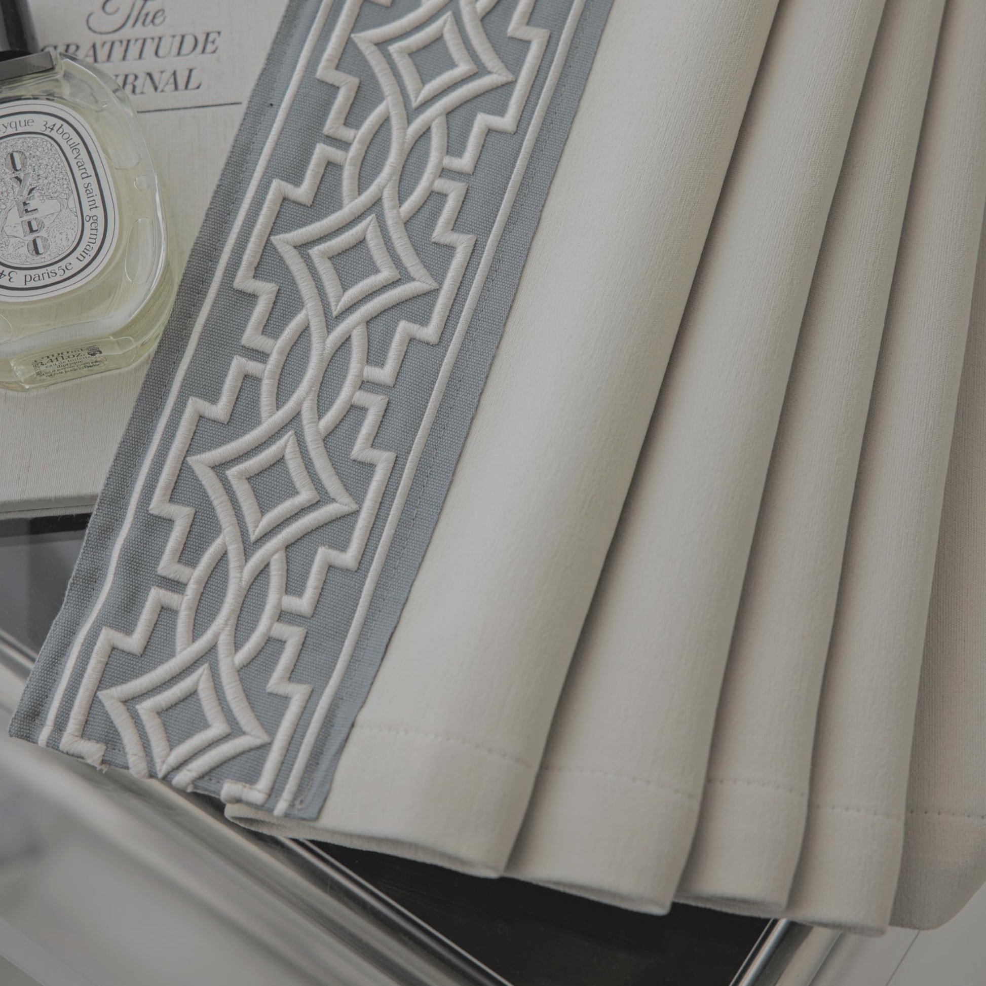 - Curtains with Trim — These tape trim drapes feature uniquely designed embroidered trim and a double pinch pleat design, creating a stylish look that adds brilliance to any room in your home.