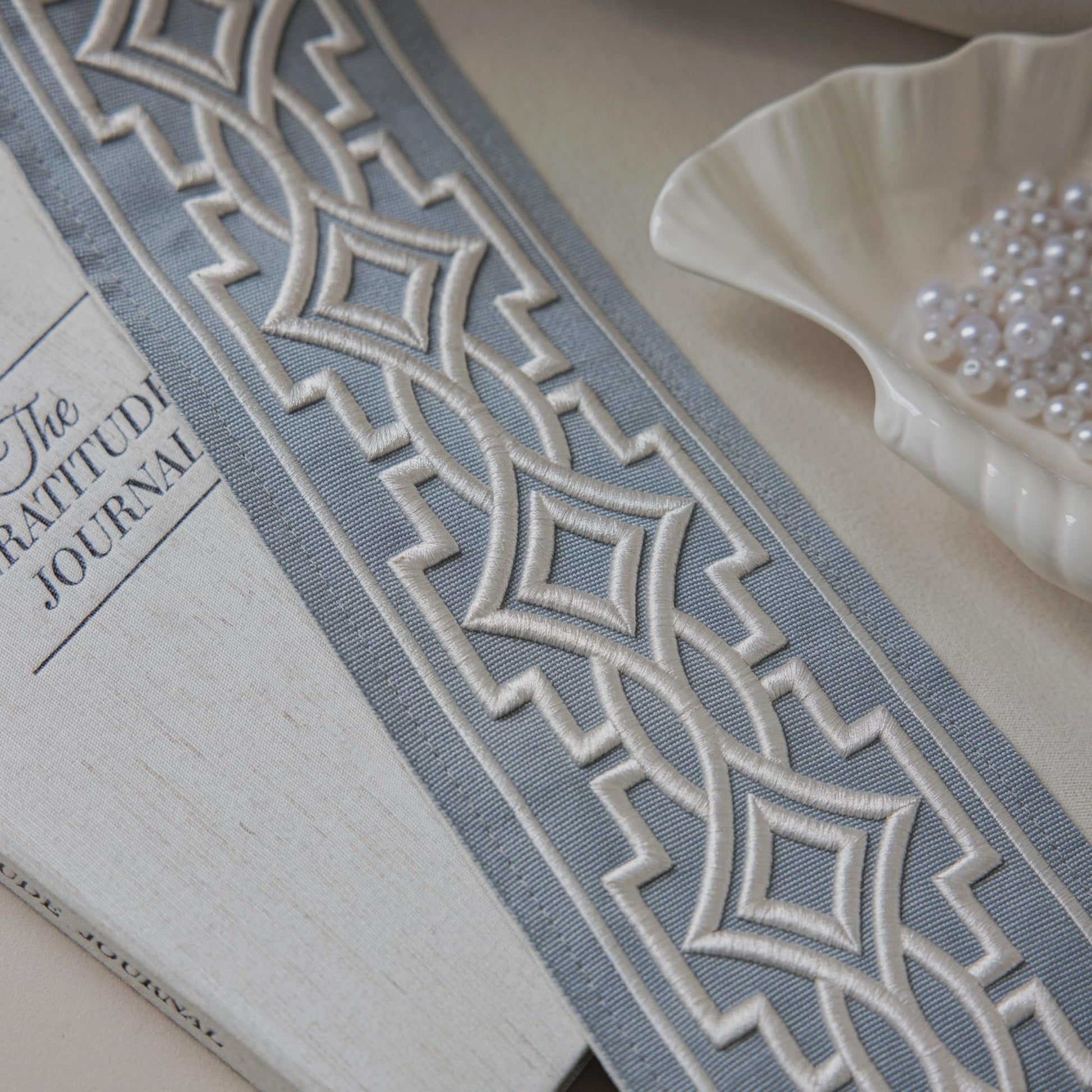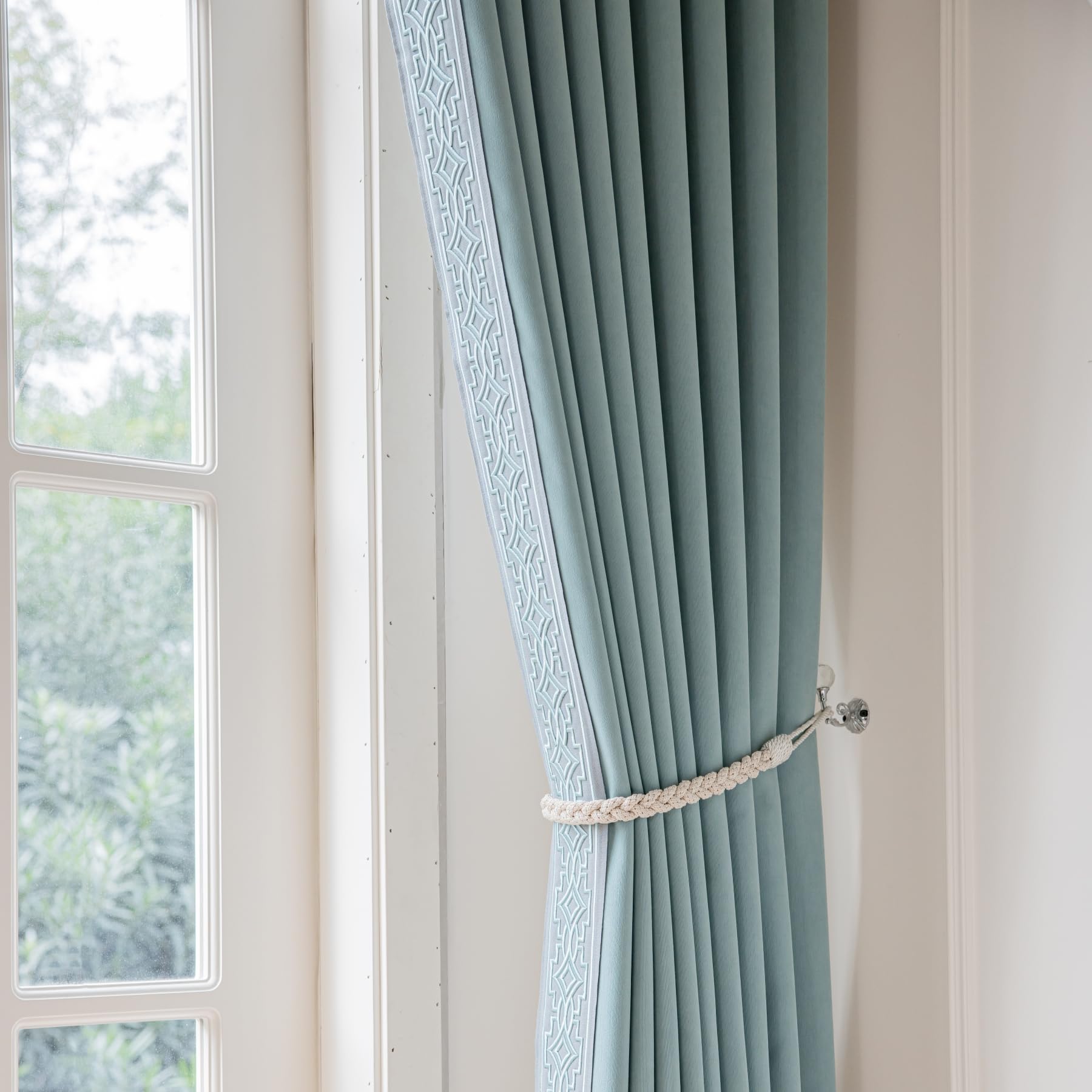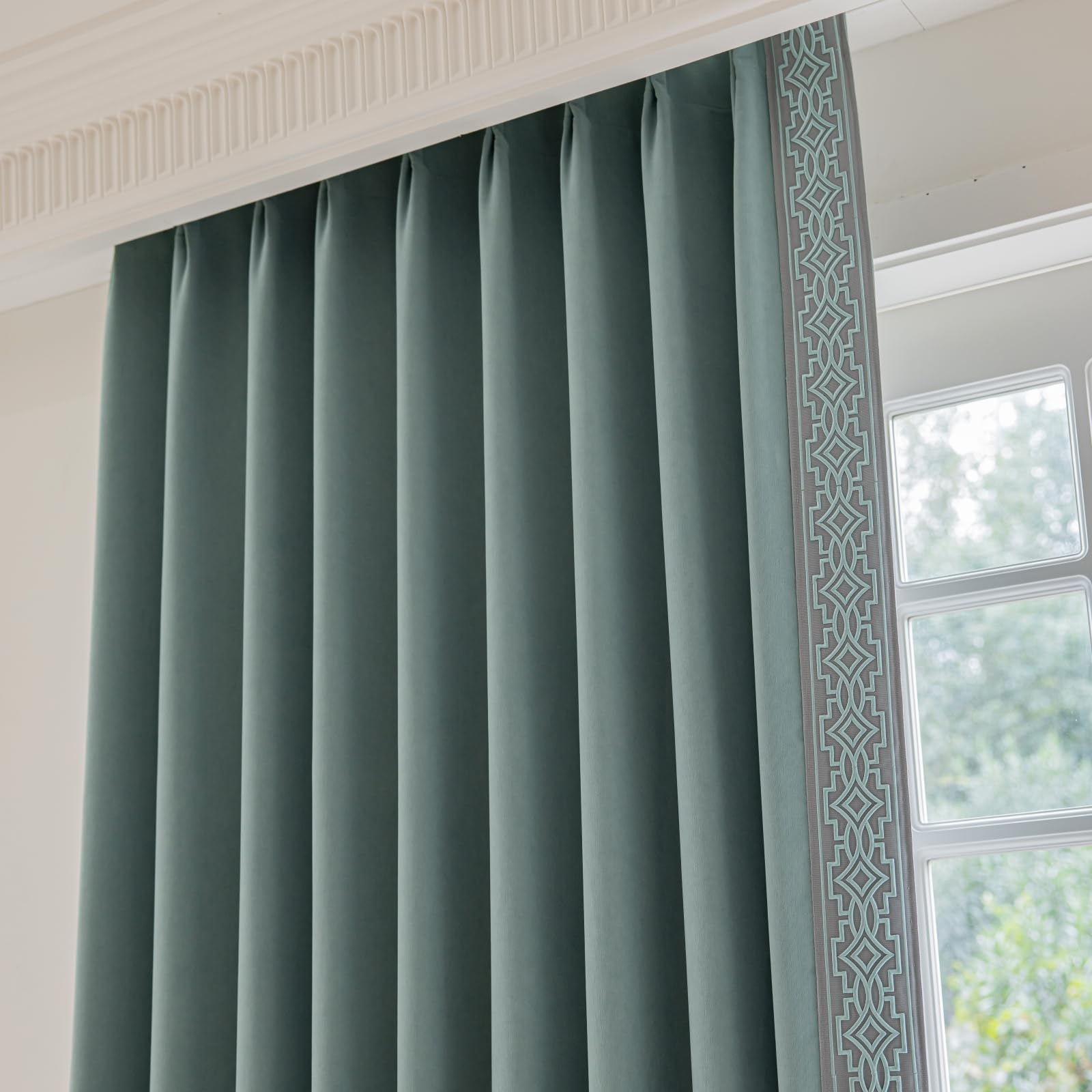 - Curtains with Trim — These tape trim drapes feature uniquely designed embroidered trim and a double pinch pleat design, creating a stylish look that adds brilliance to any room in your home.