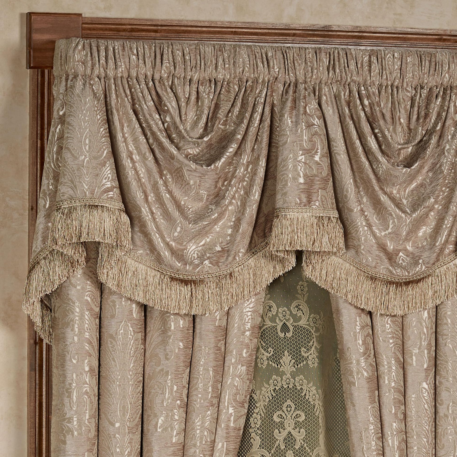 - LUXURIOUS ROYAL STYLE | Fancy matte satin damask patterns each window item with a traditional, graceful allure atop the uniquely textured polyester chenille ground to create an elegant, luxurious look; while lovely gimp trim and brushed fringe finishes the Empire Valance for added panache