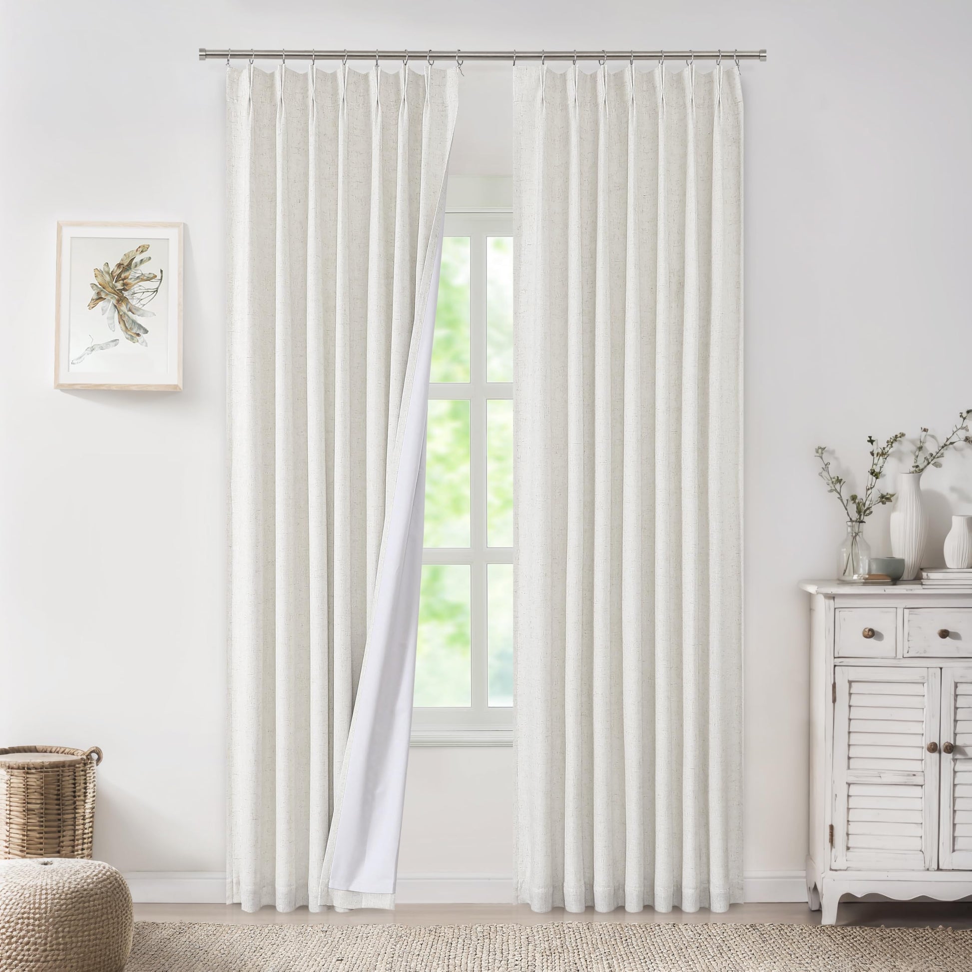- Perfect Pinch Pleats: Luxury sew-in pinch pleats top design makes it easy for installation --with back tabs, with the included hooks, with your own clips or with your track system. Rings are not included.
